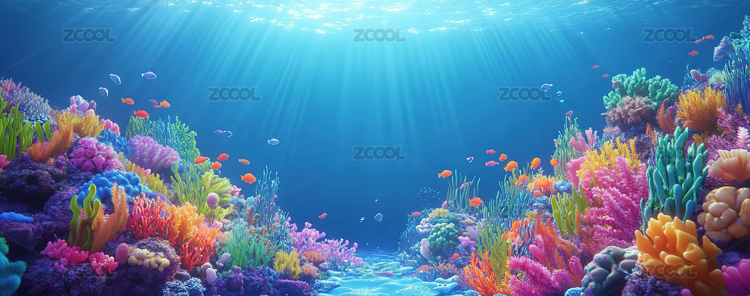 海底世界珊瑚礁鱼群海洋梦幻唯美创意设计艺