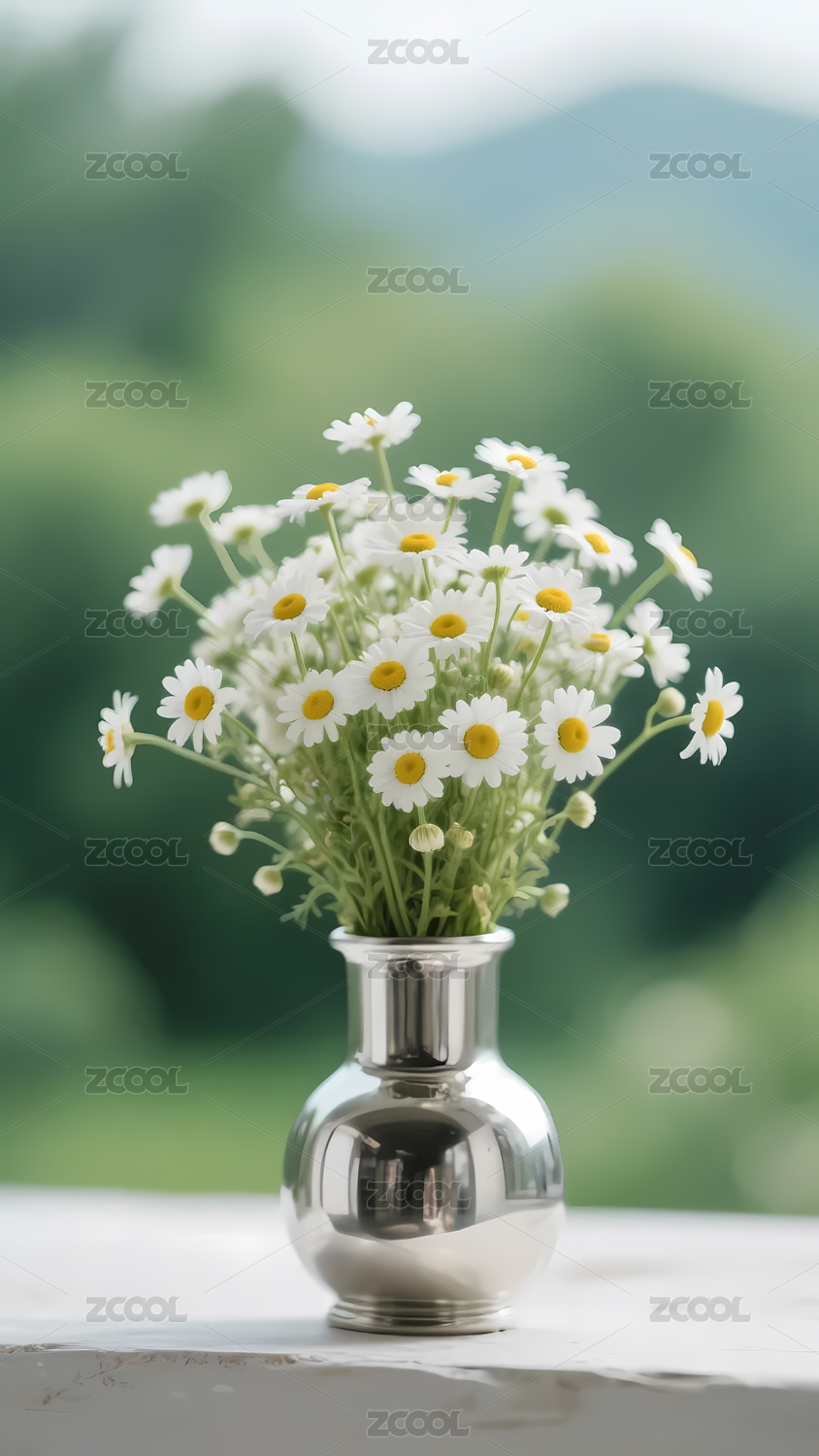 白色背景下一束插在玻璃花瓶里的五颜六色的
