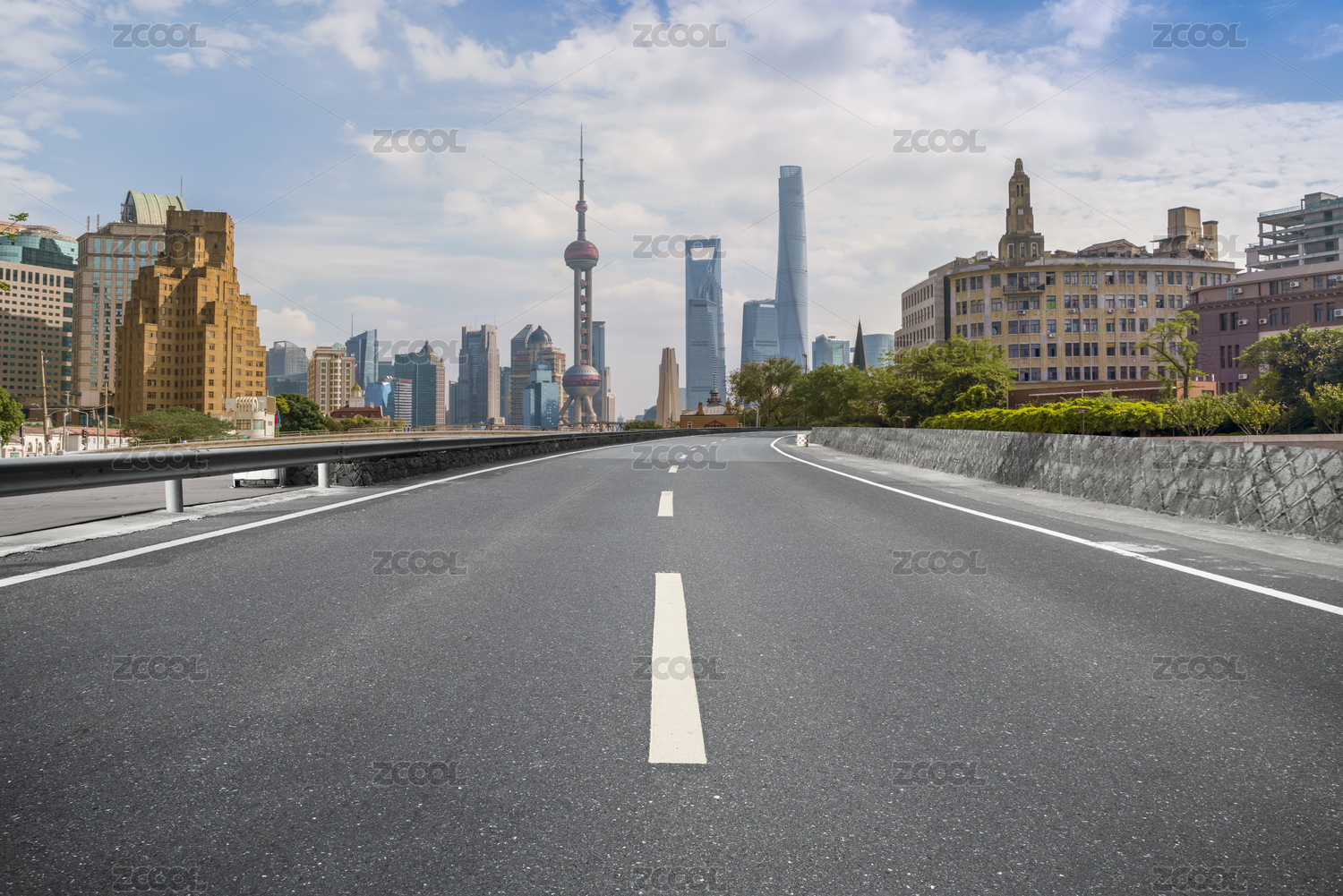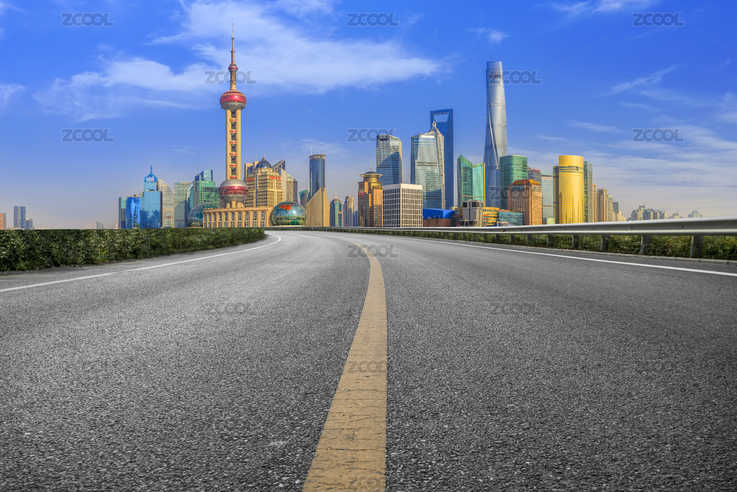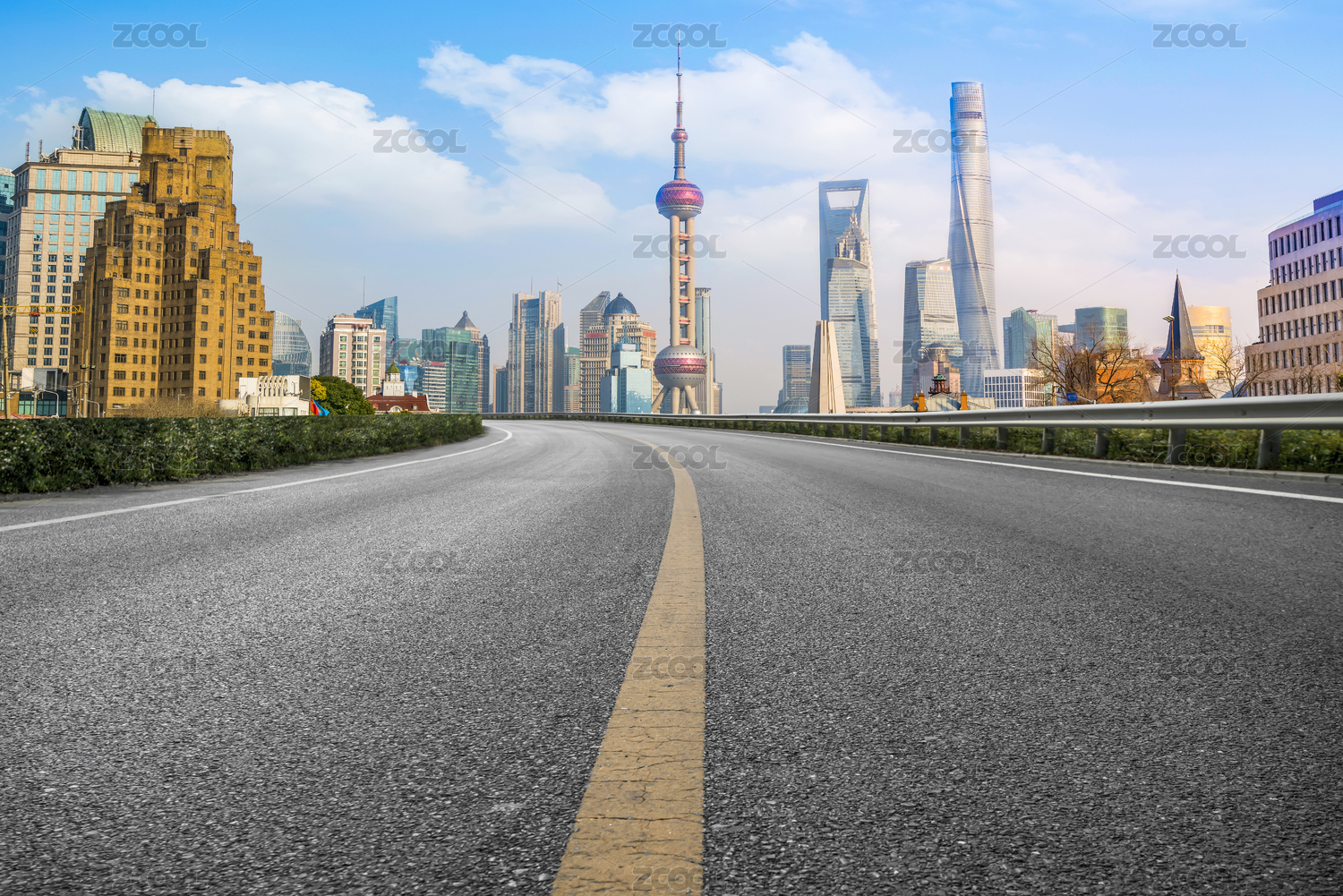 公路弯道和上海建筑景观