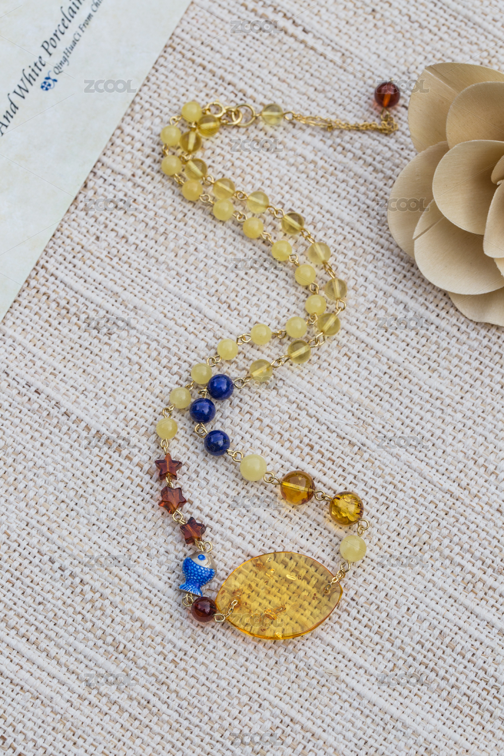 琥珀蜜蜡项链吊坠鸡油黄色中式复古佛家禅意的天然珠宝 自然光拍摄 文艺风格