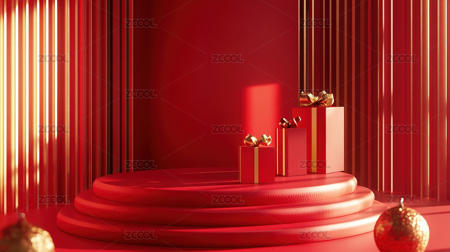 电子商务,人造空间,商品,三维图形,红色,舞台,促销,展览,插画,无人