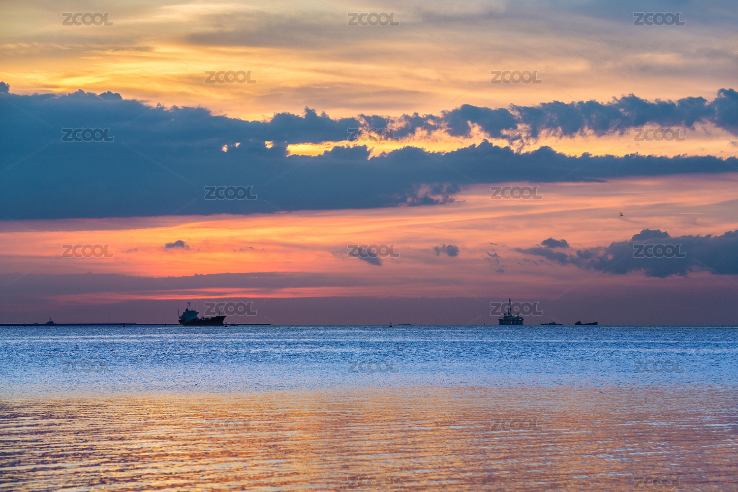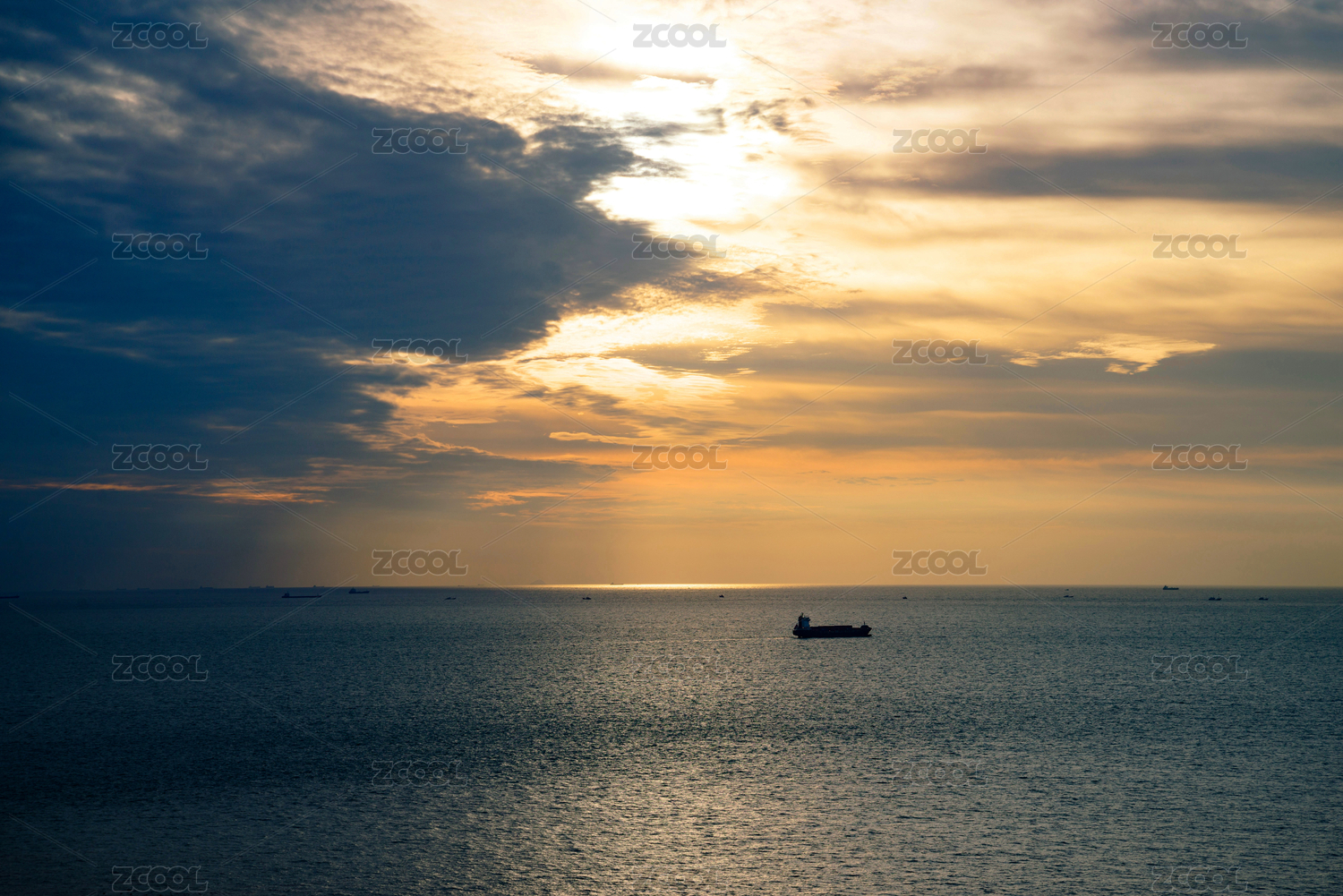 地中海金色日落夕阳中的孤独航行的帆船剪影