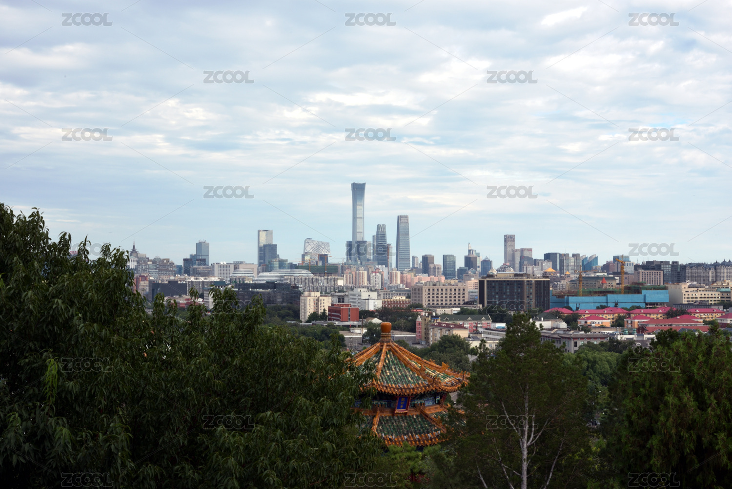 从北京景山公园万春亭向东南侧俯瞰北京市区:中国尊及北京CBD的摩天大楼群
