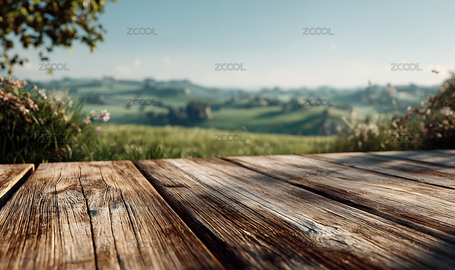 木制平台上的美丽田园风光主题
