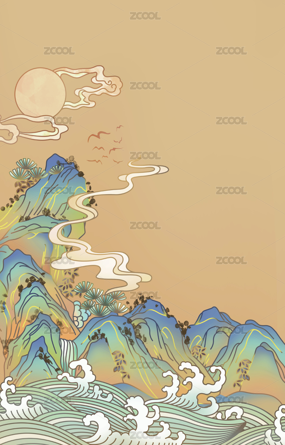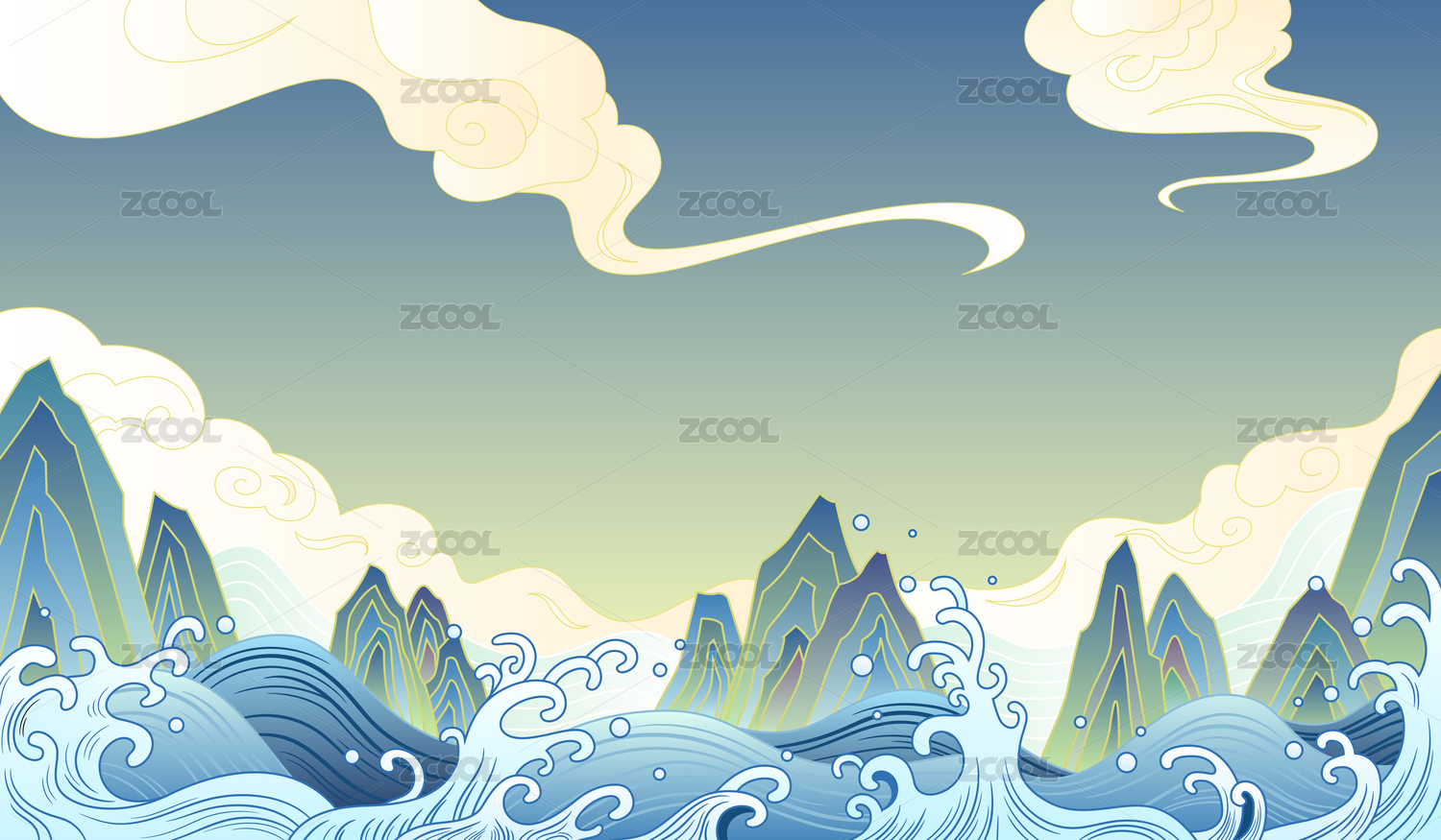 水,山水,水纹,蓝色,云,云纹,中国风,传统,古典,国风