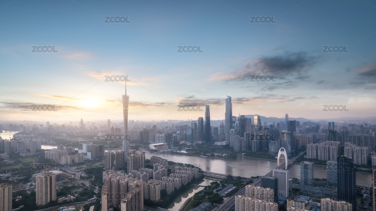 航拍日落广州