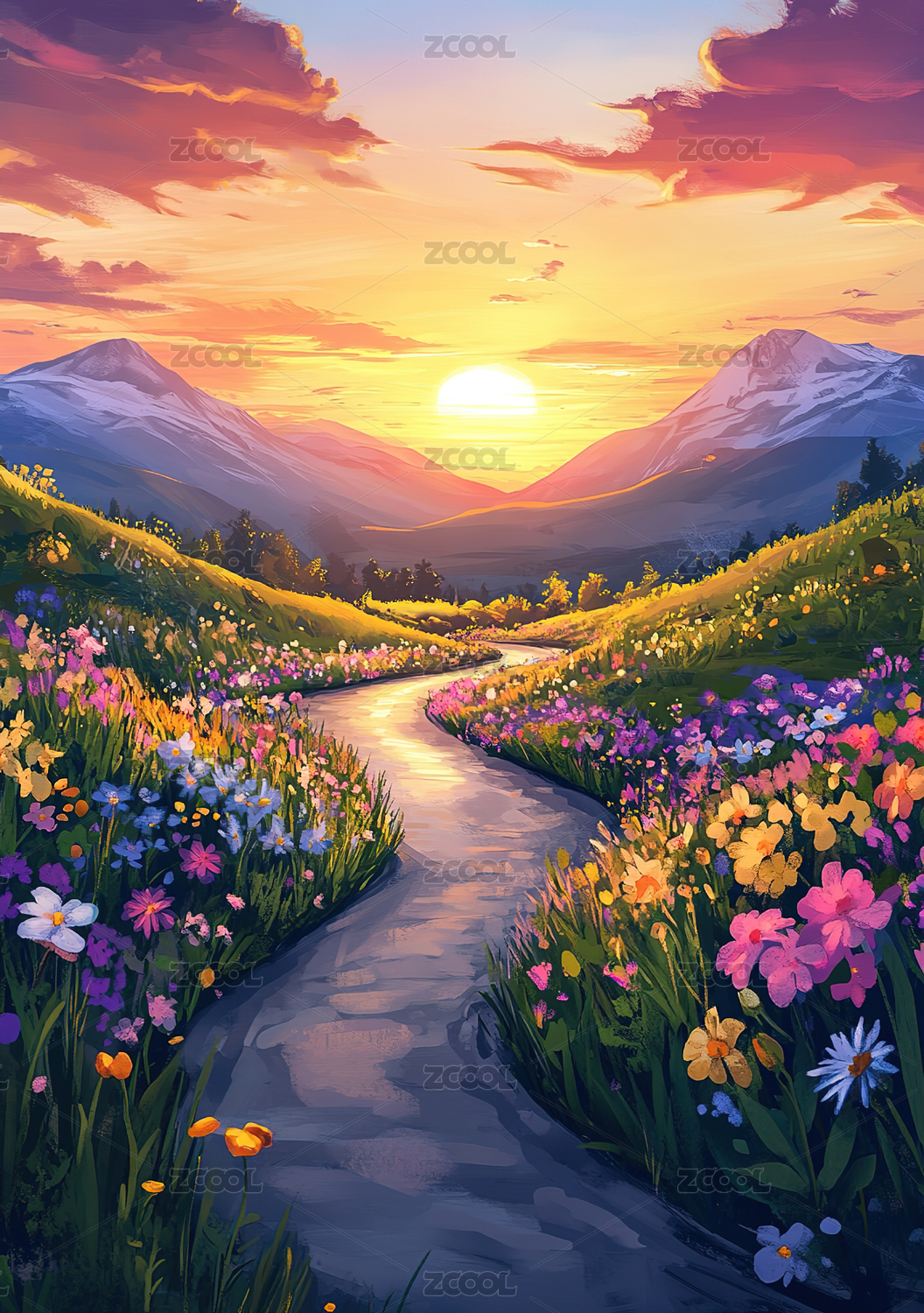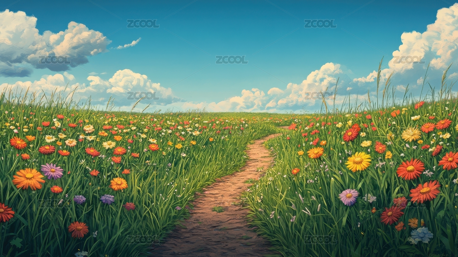 花海中的石板小路