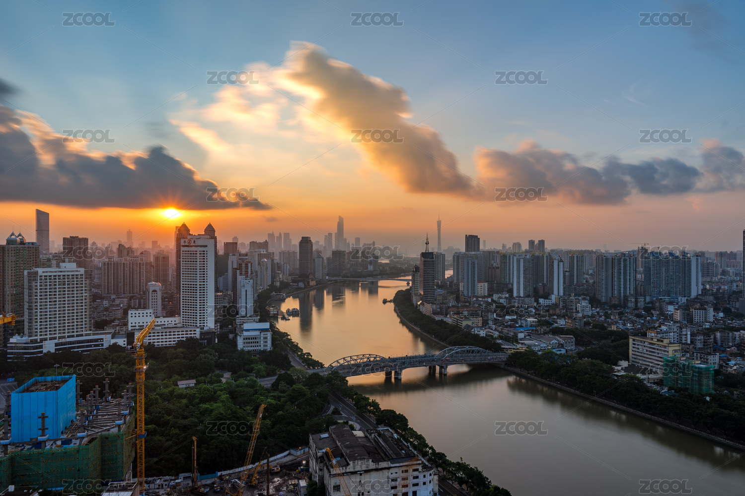 广州珠江两岸景观与城市天际线日出