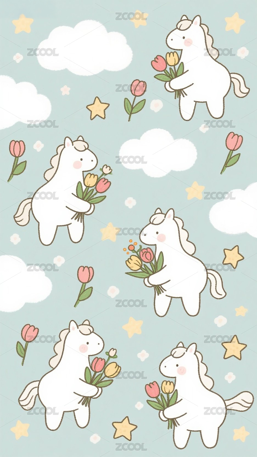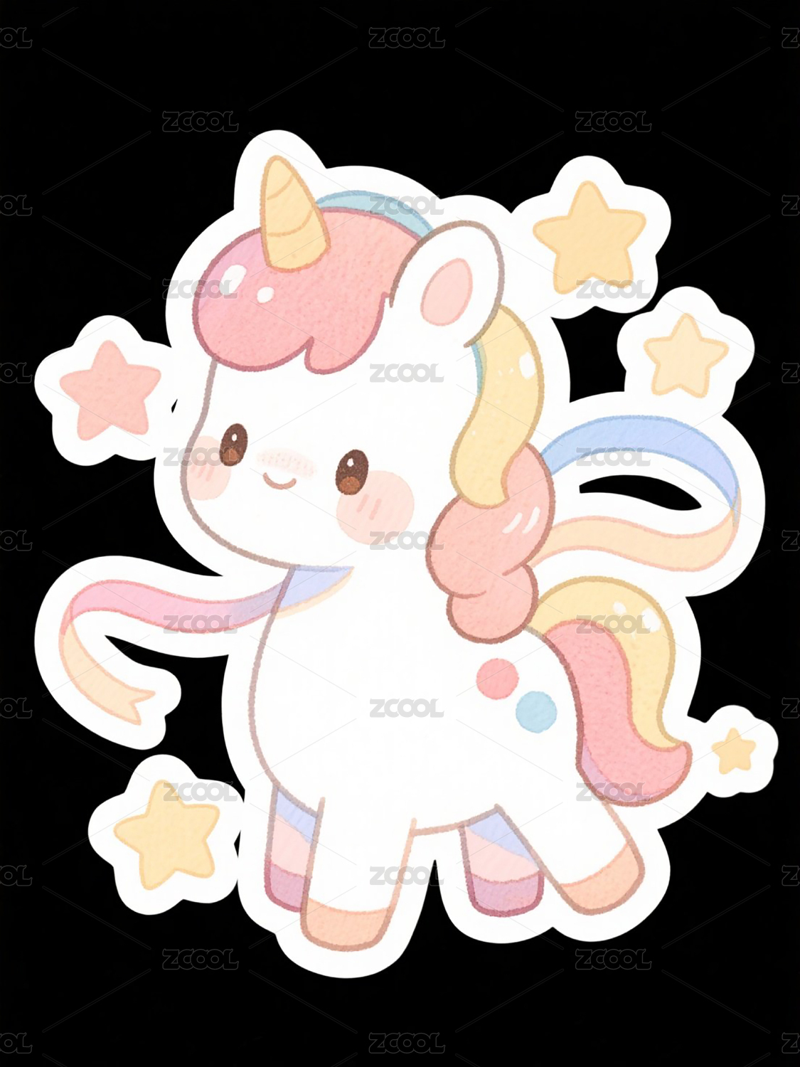 Q版,独角兽,彩色,粉色,原宿风,壁纸,可爱,设计,艺术,动画片