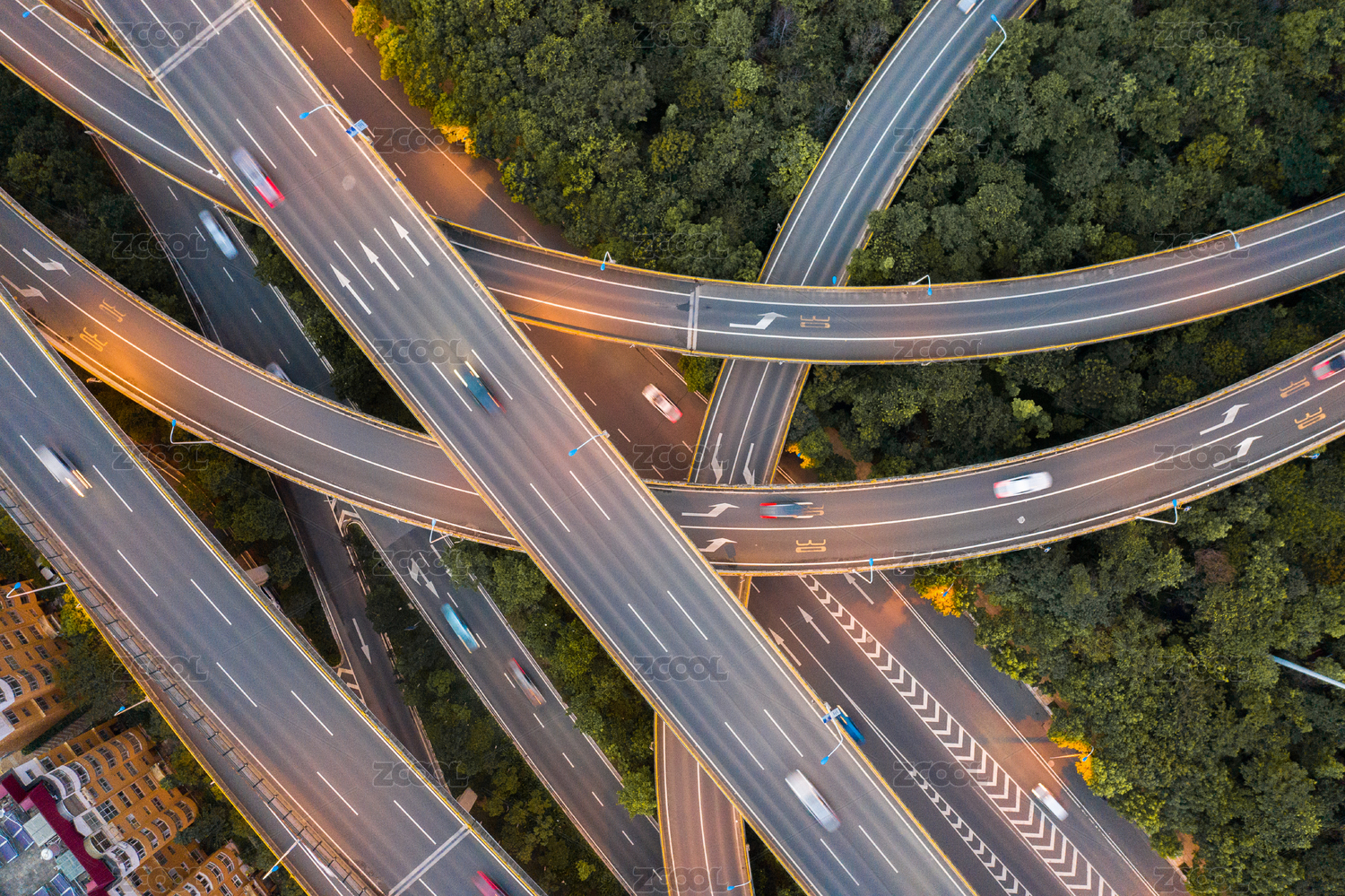 城市高架立交桥道路车流夜景航拍俯瞰视角