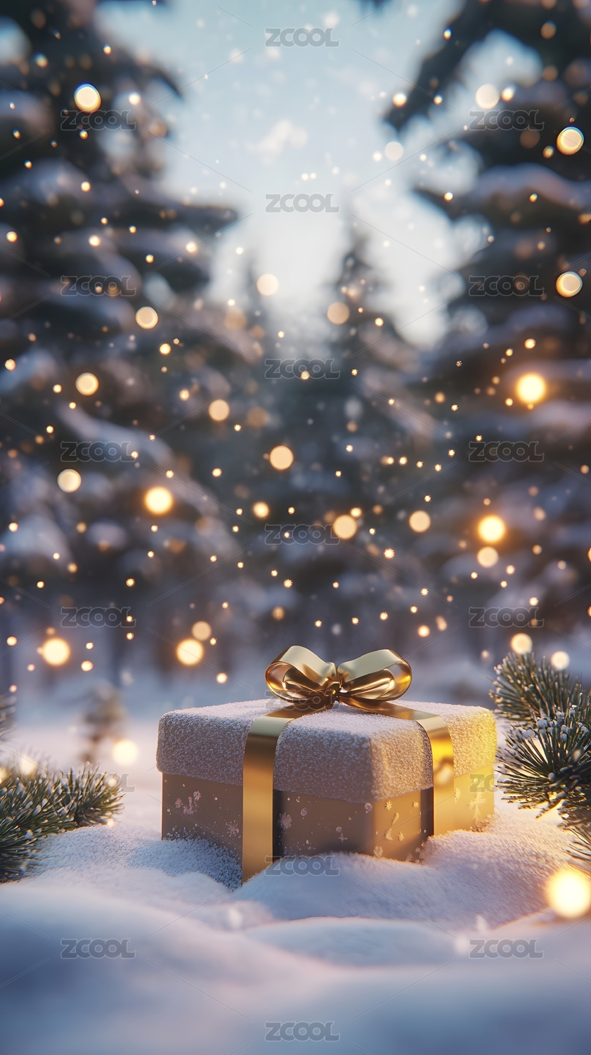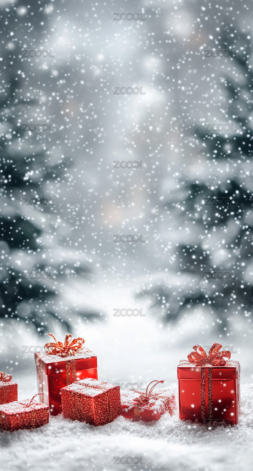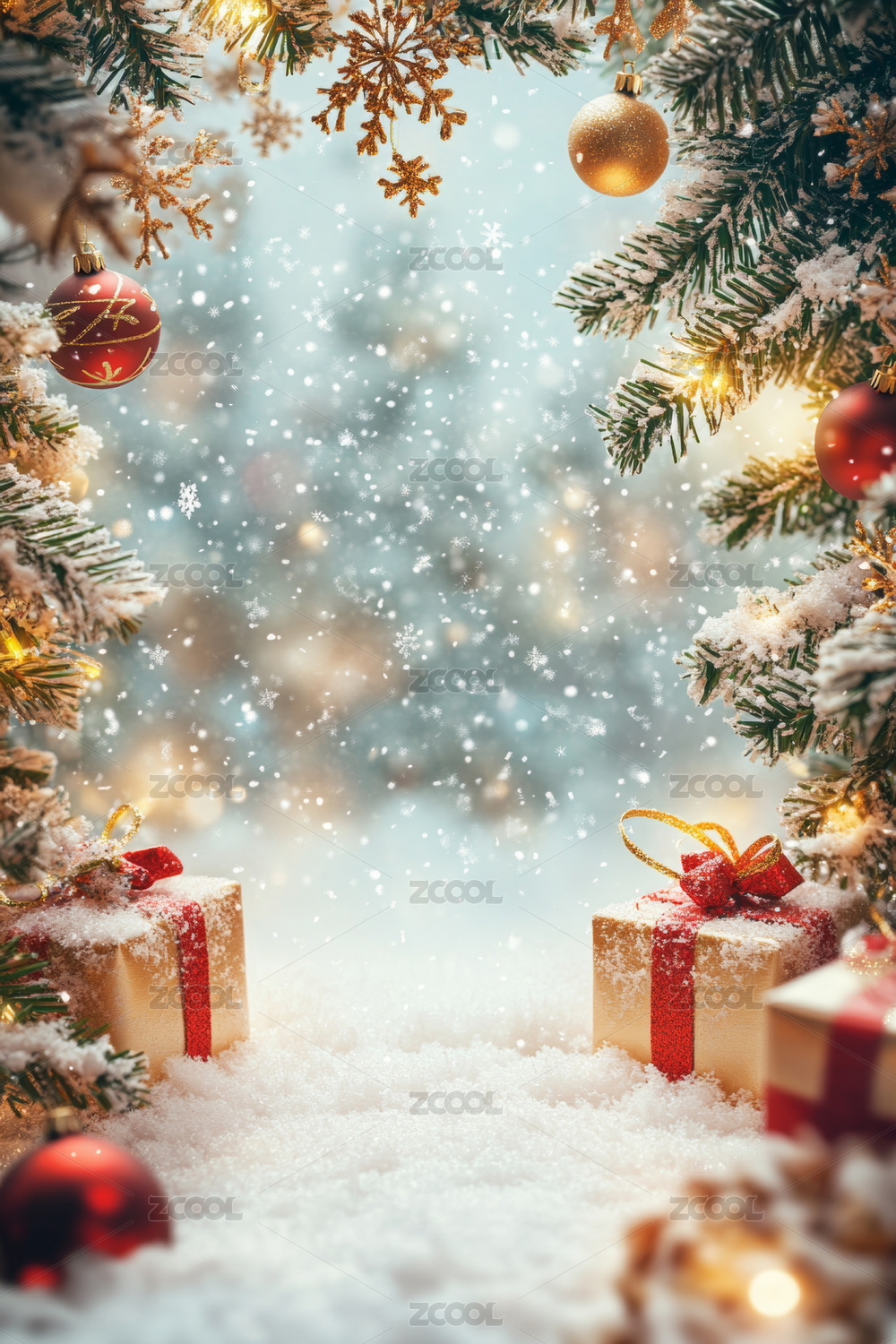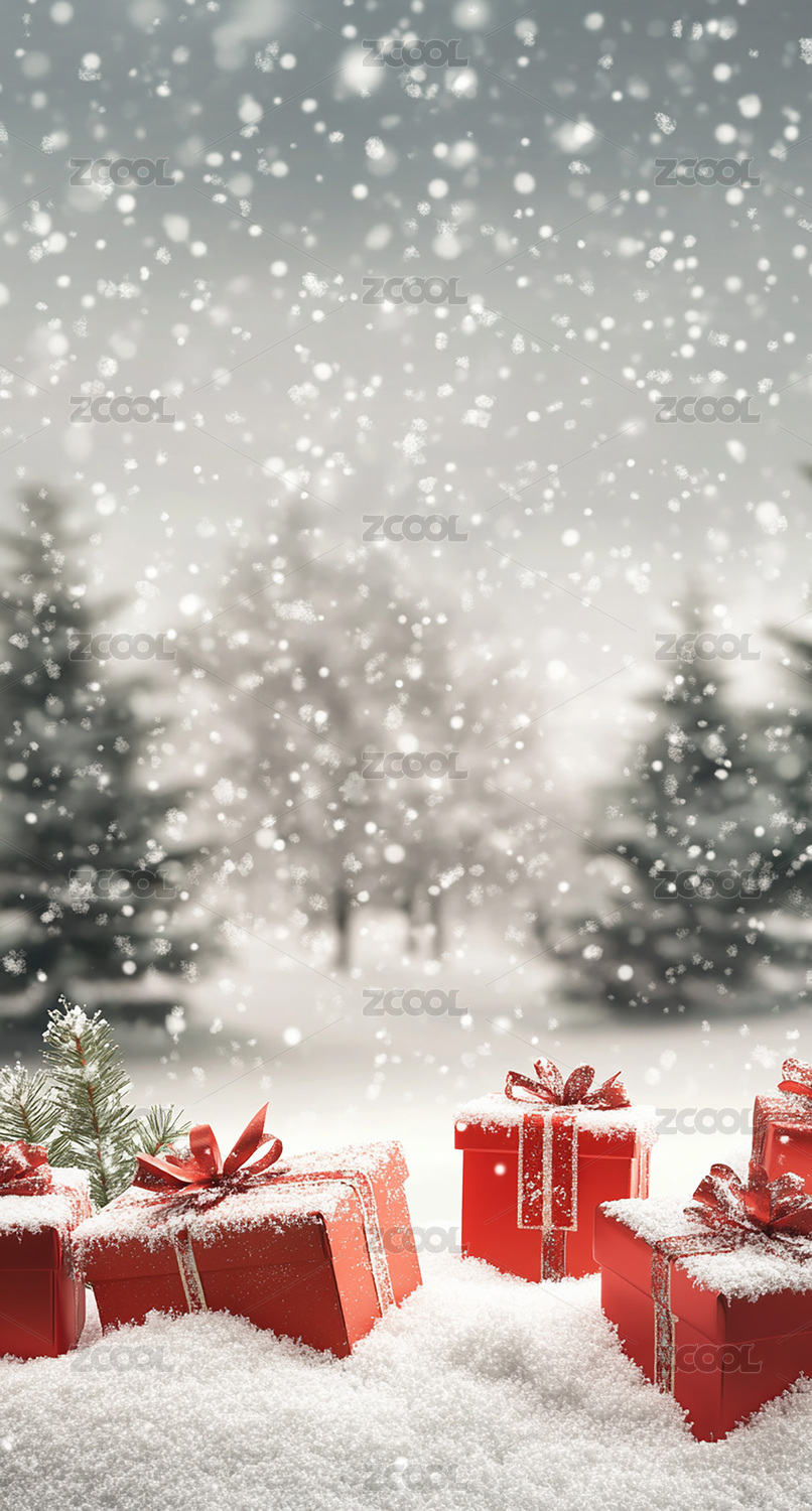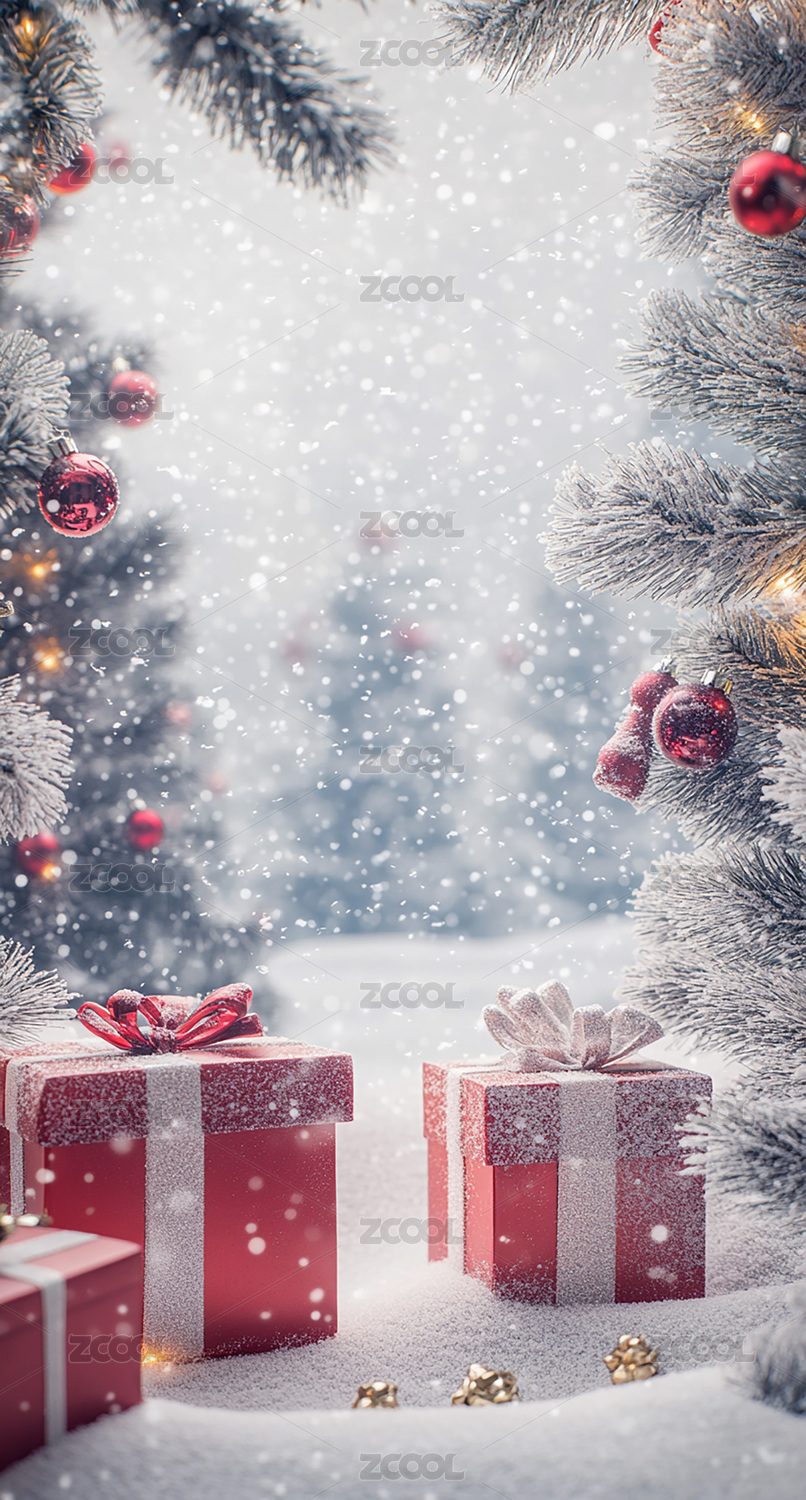 圣诞节冬日雪景圣诞树圣诞礼物电商背景