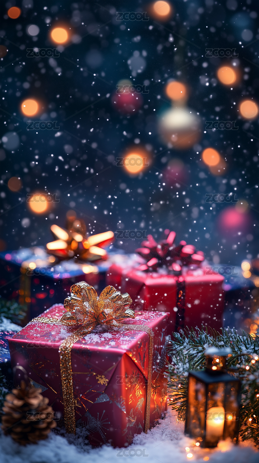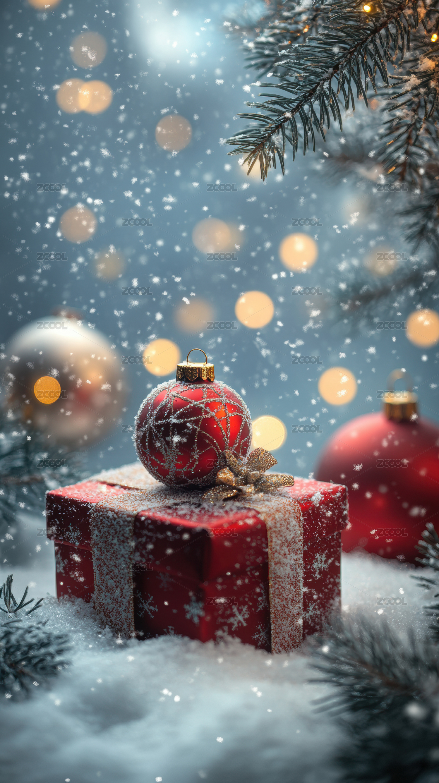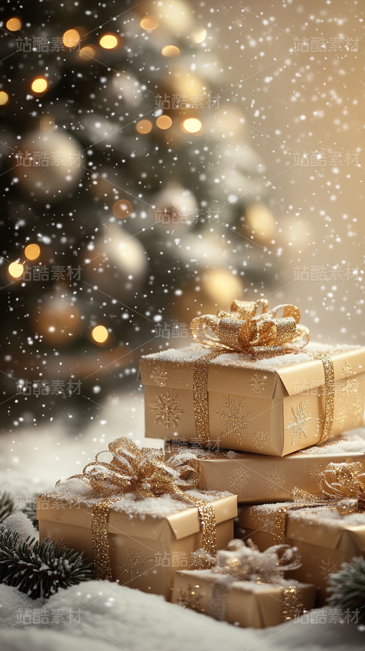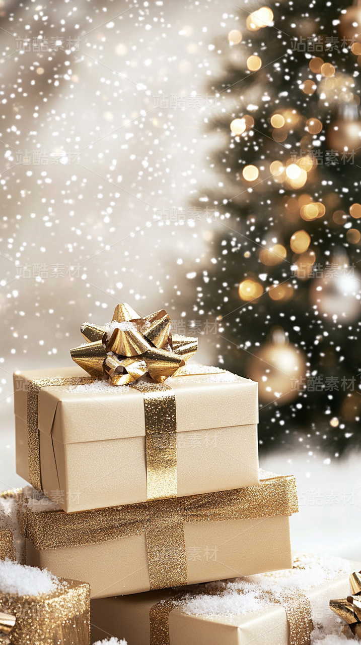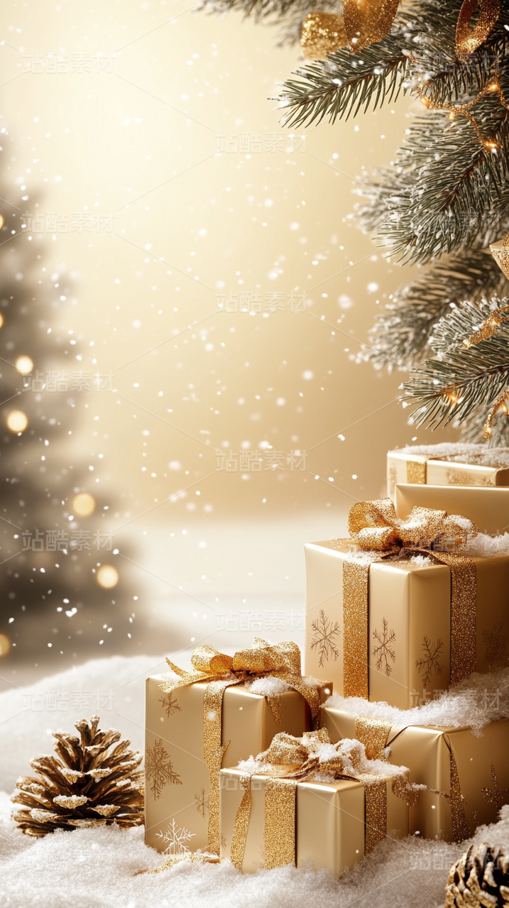 圣诞节冬日雪景圣诞树圣诞礼物电商背景