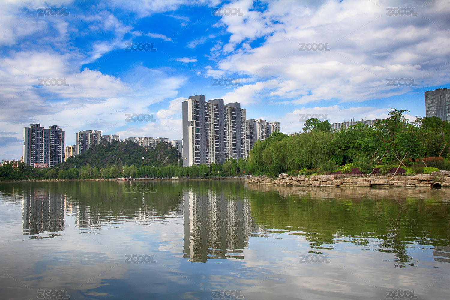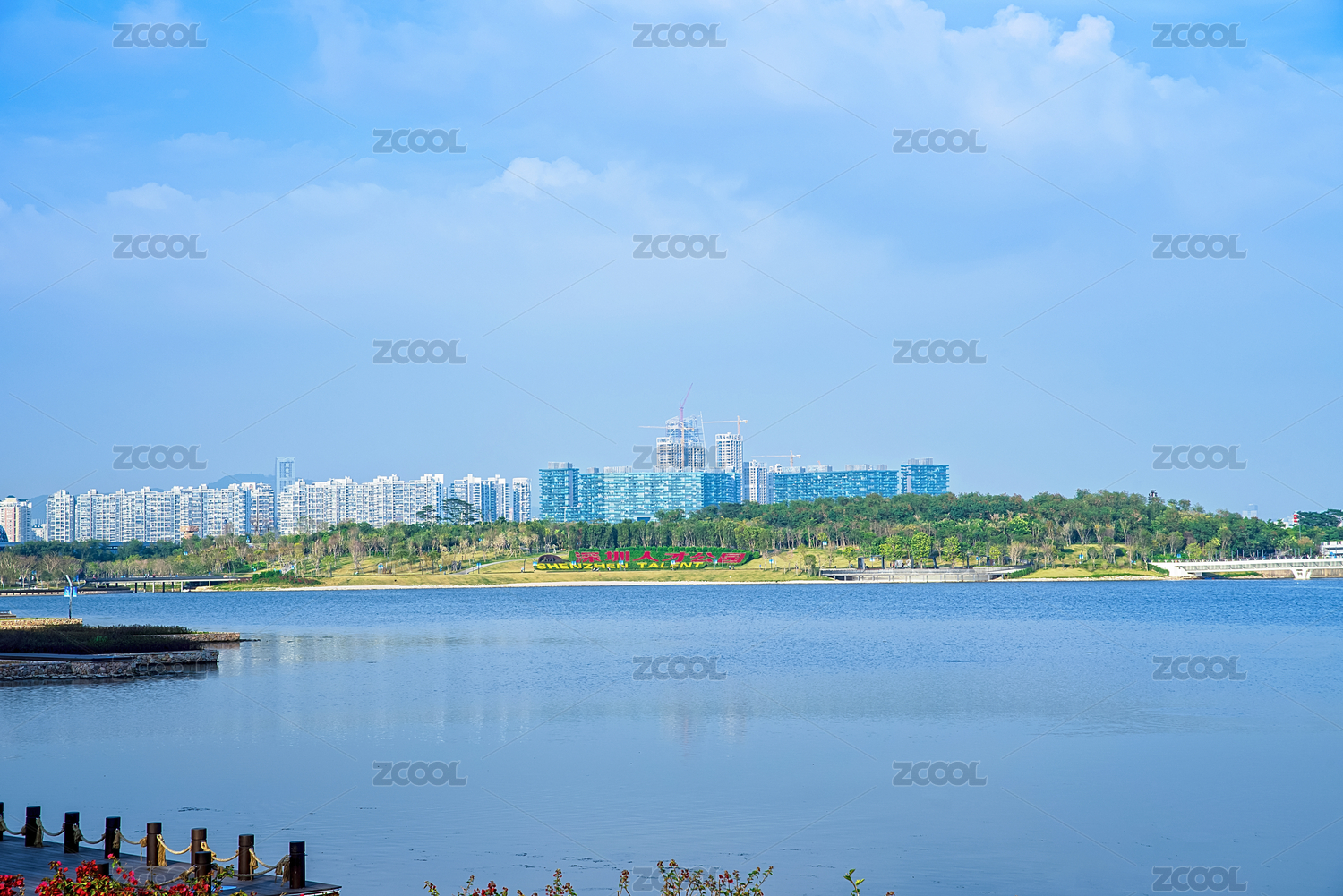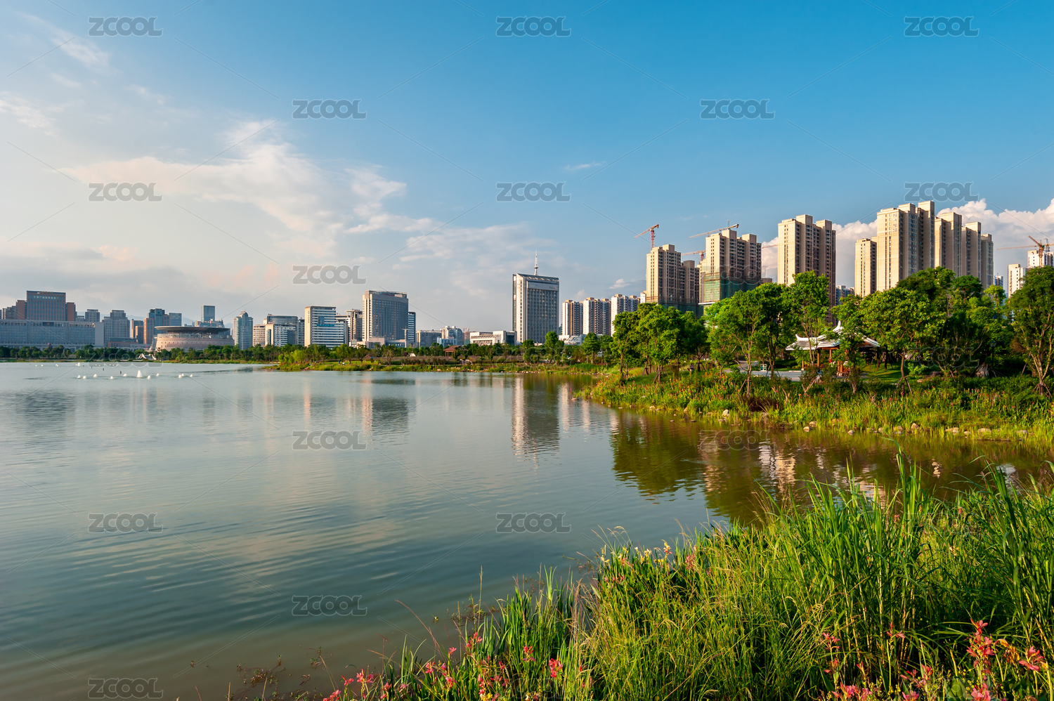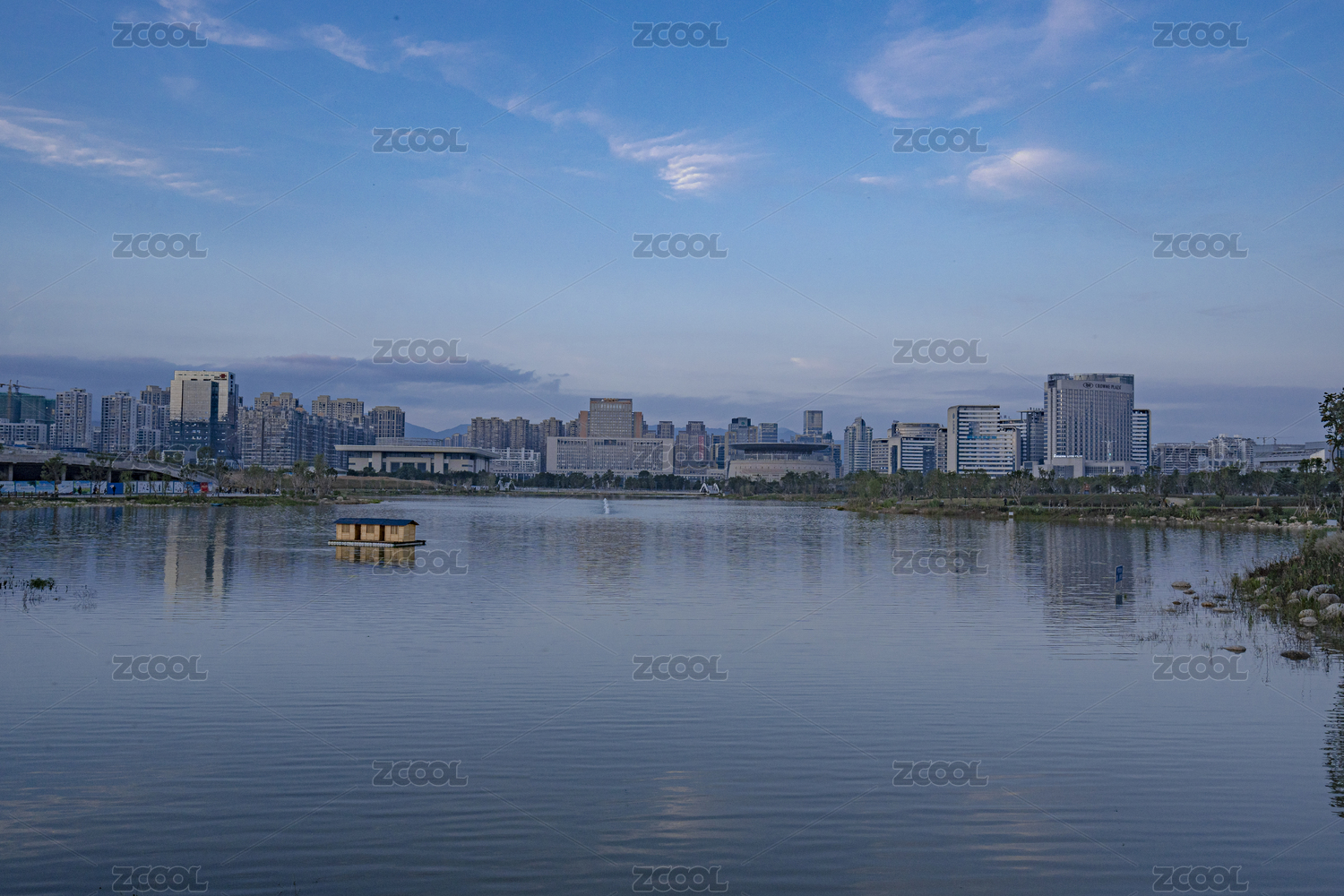 四川天府新区兴隆湖畔秋日自然和建筑风光