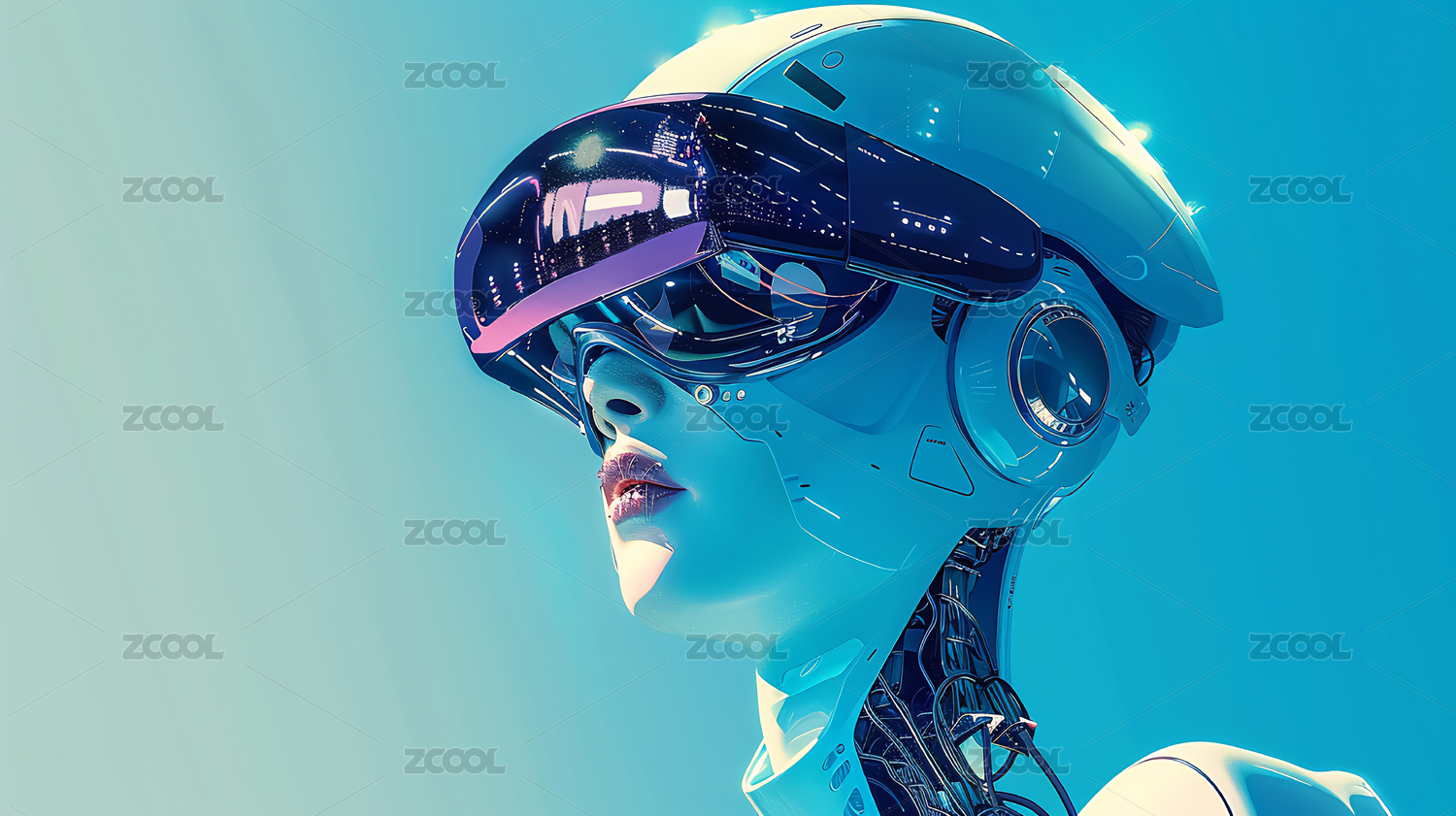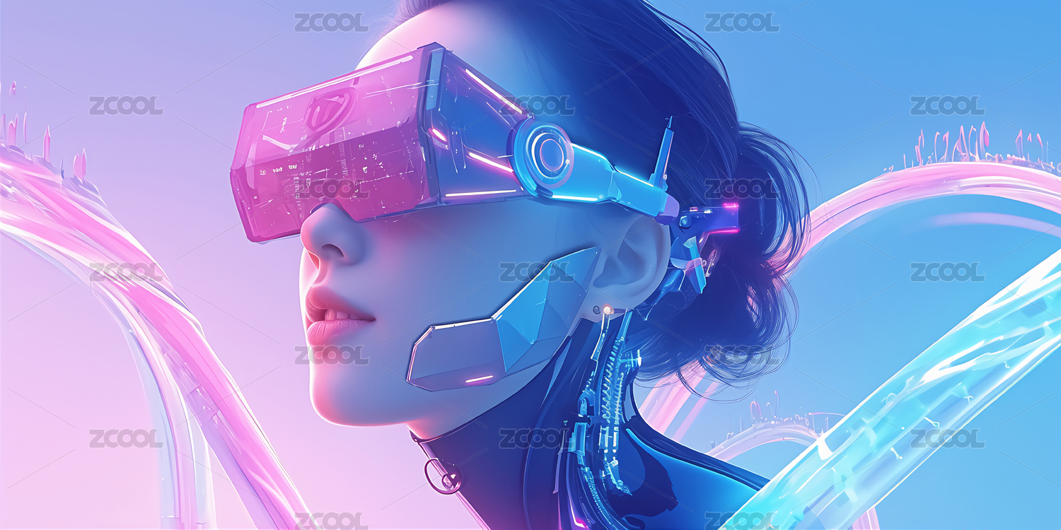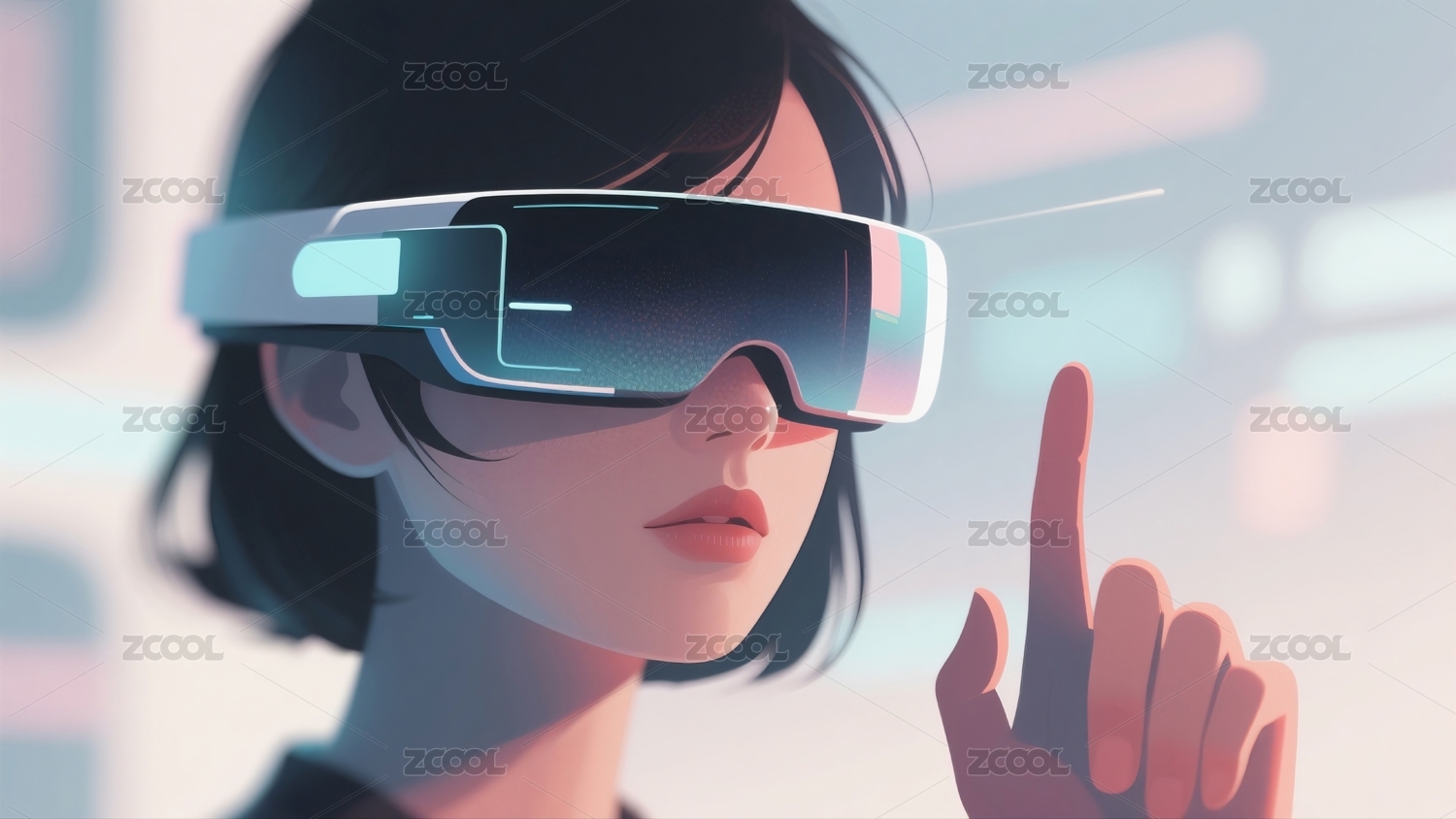 佩戴新型智能VR眼镜的漂亮女孩插画
