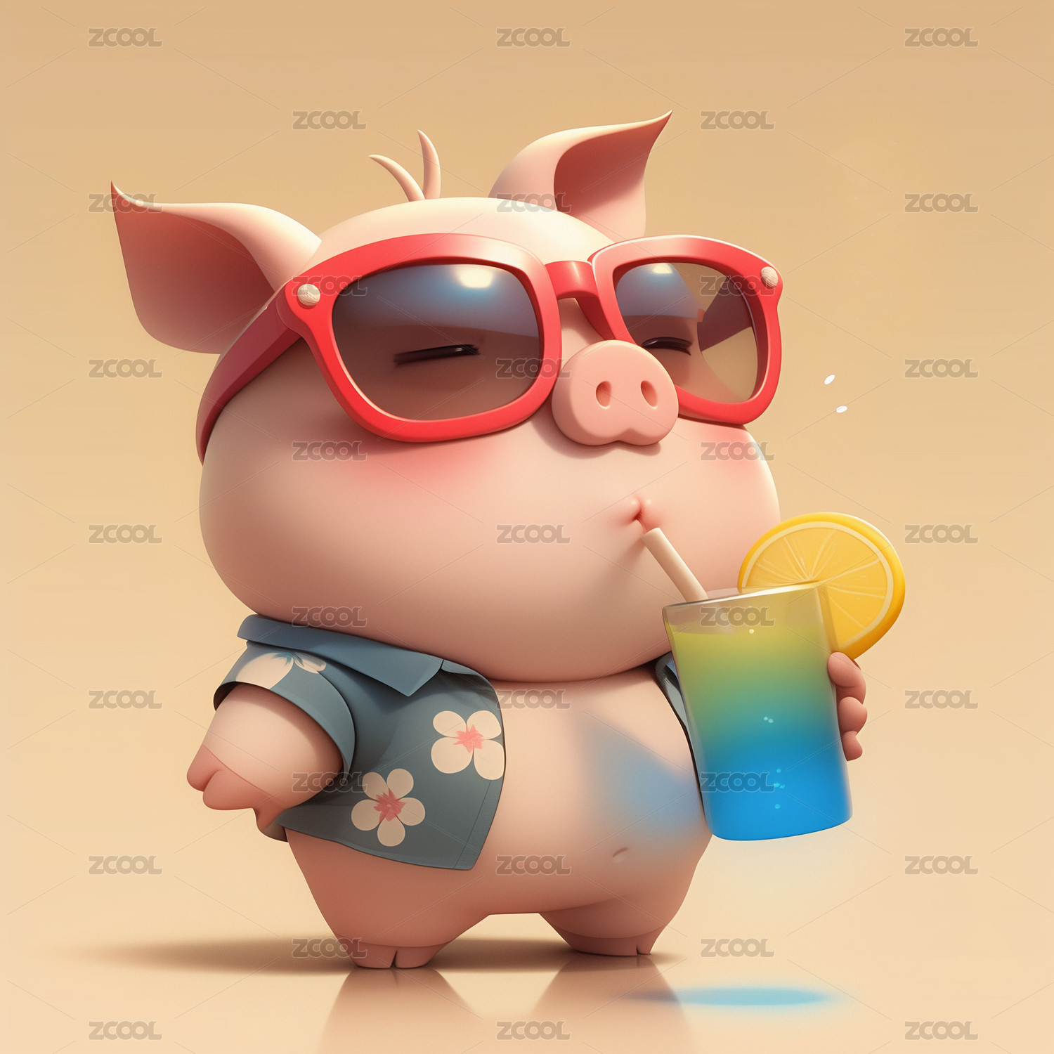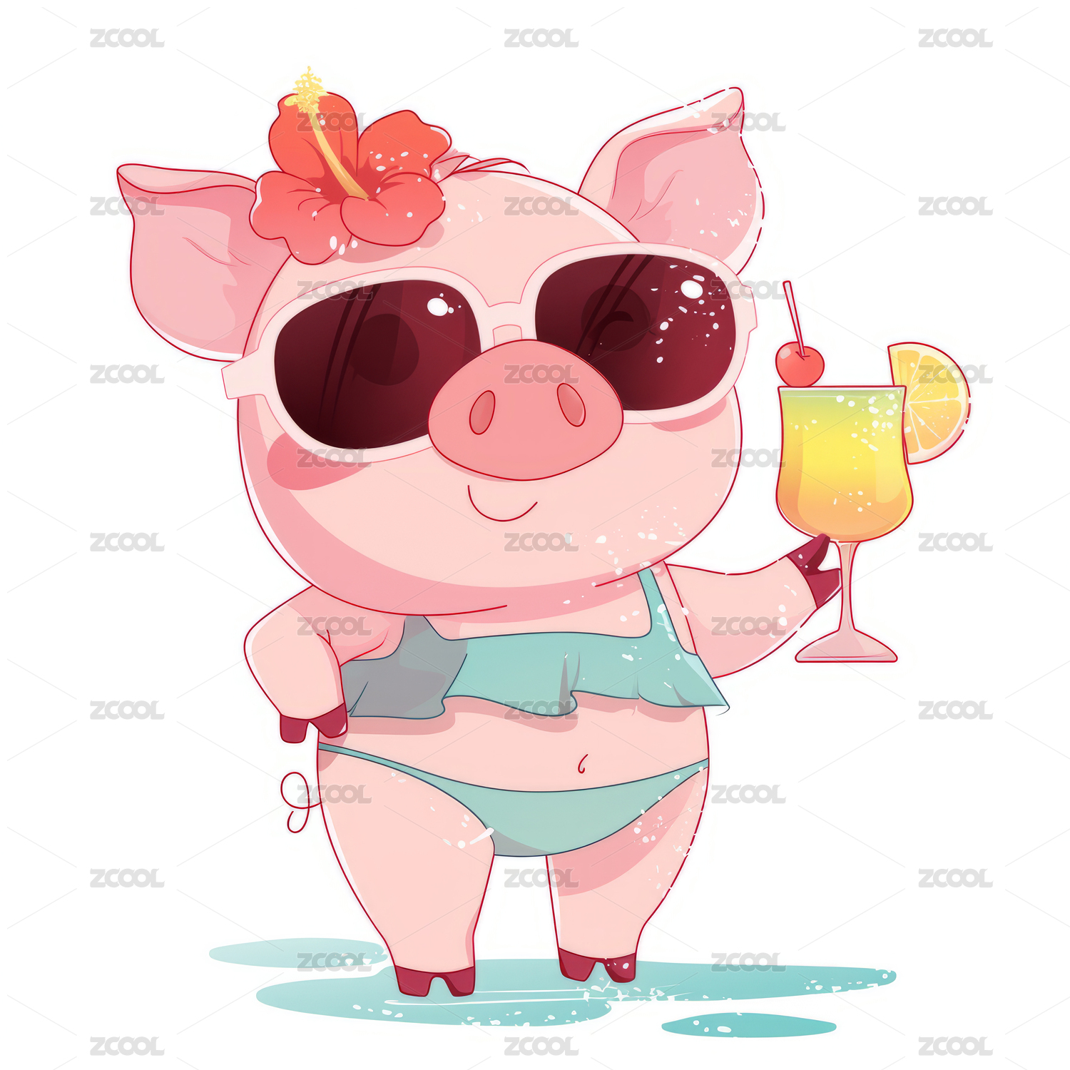 卡通,猪,形象,插画,IP,元素,童年,运动,动物,设计