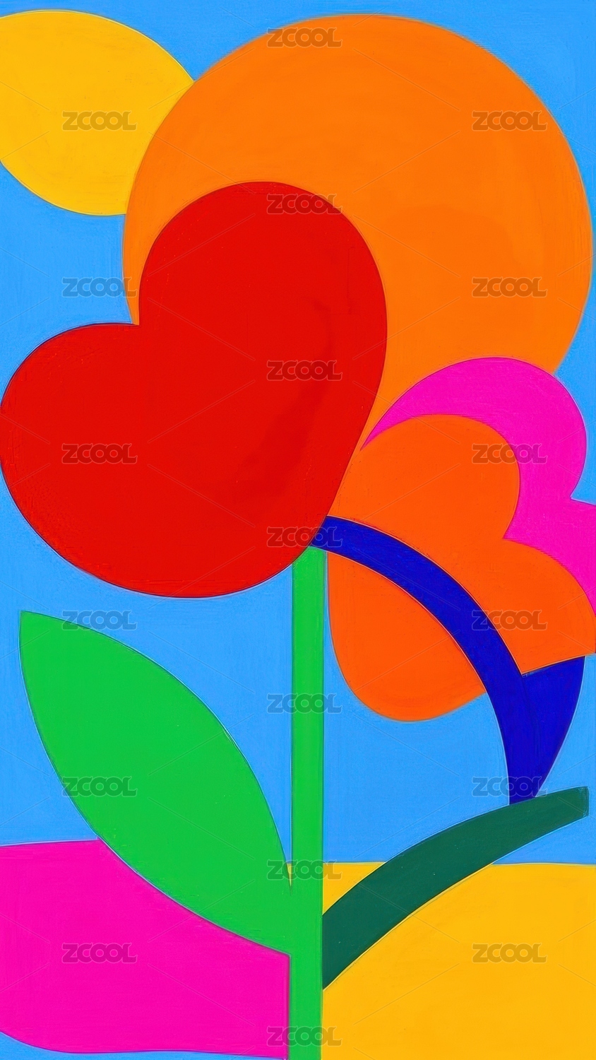 原创插画线圈画向日葵蓝天白云植物花卉装饰现代手绘创意背景素材