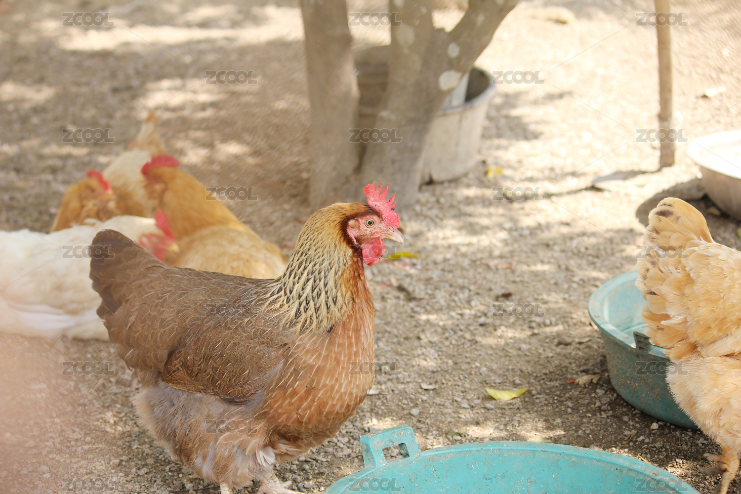 乡村农家饲养的土鸡 公鸡母鸡吃食