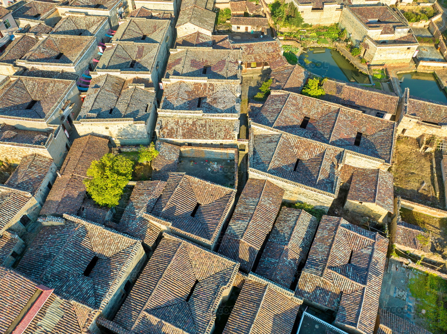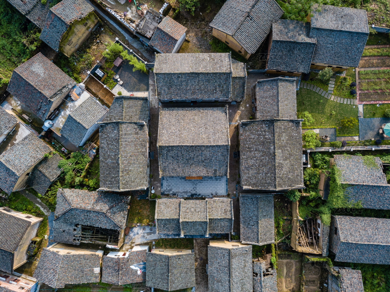 中国广西贺州黄姚古镇房屋建筑俯视航拍
