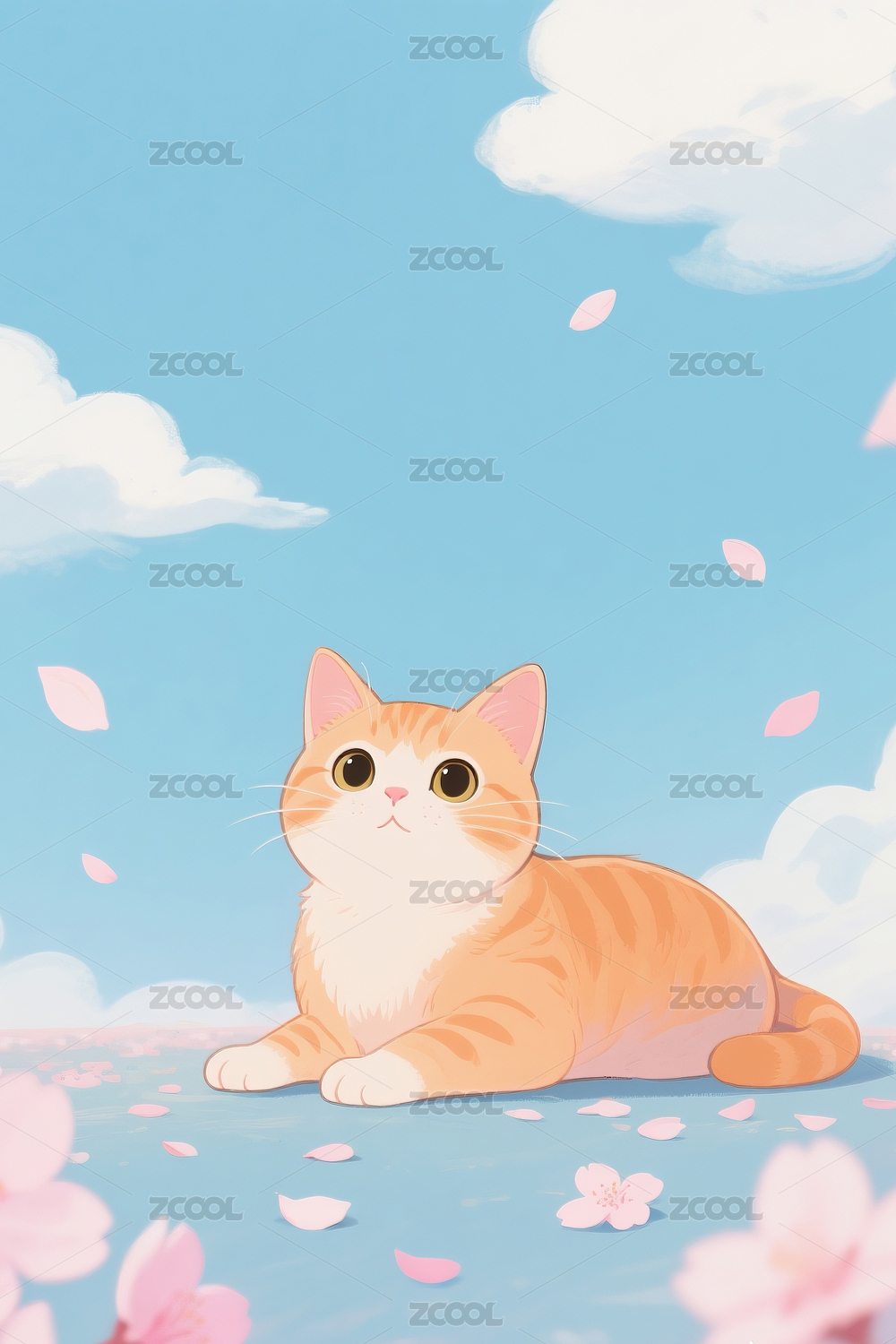清新唯美的白云和可爱的猫咪