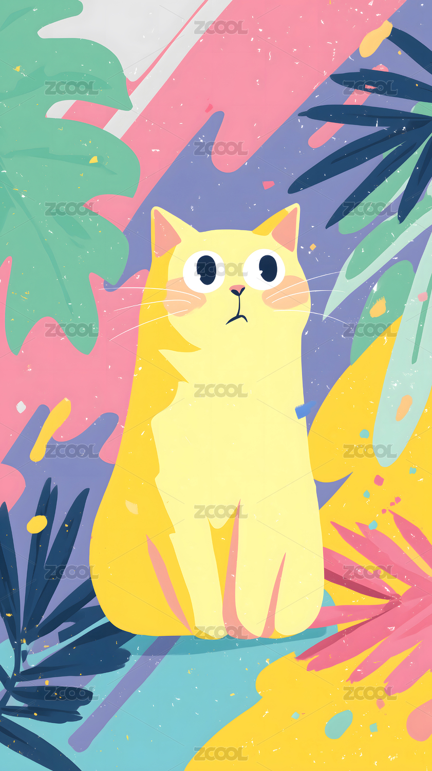 卡通猫咪与热带植物
