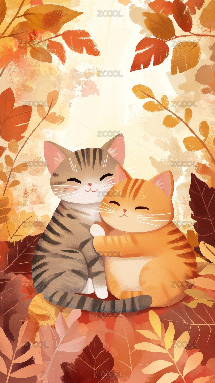 秋天猫咪和枫叶插画