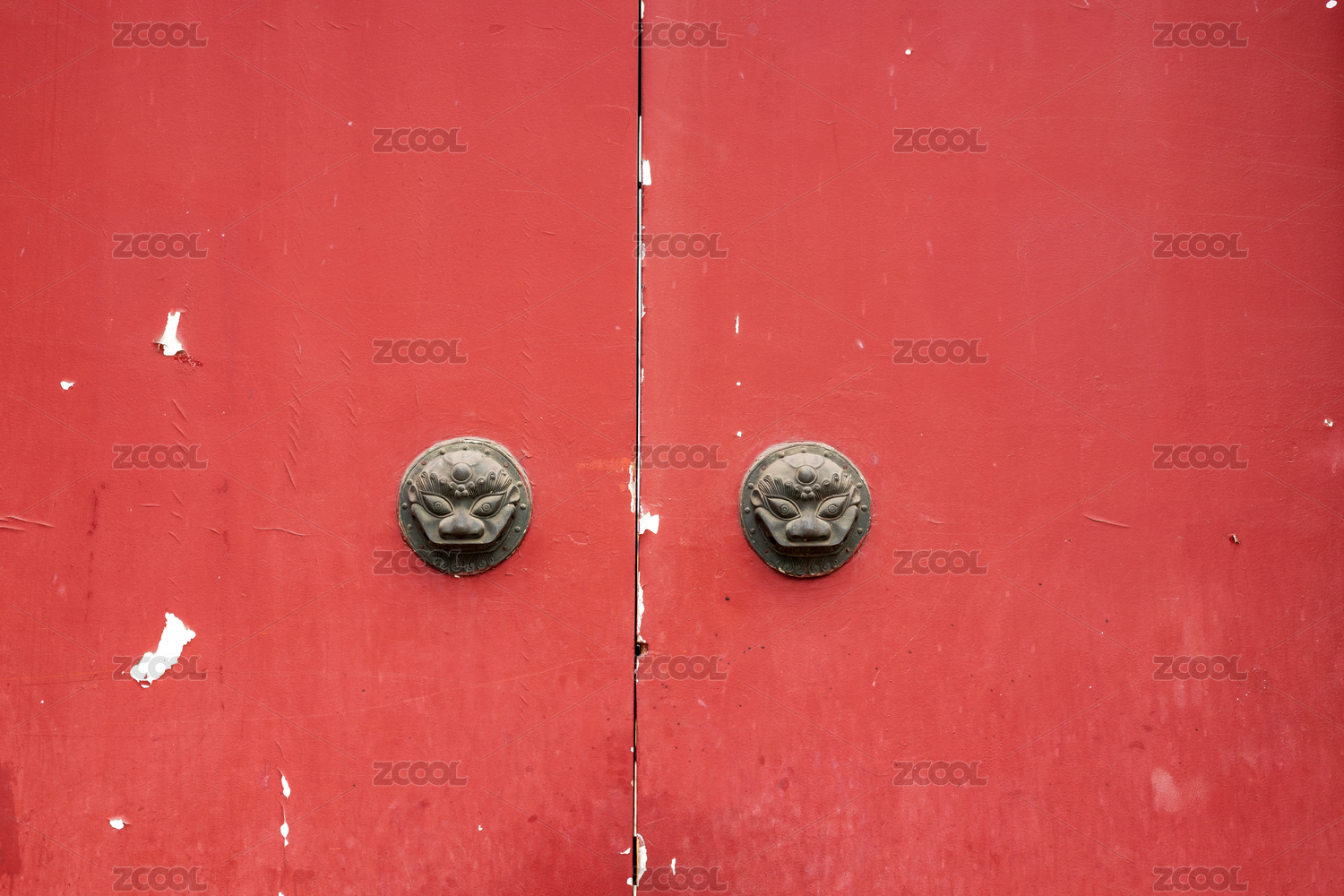 中国传统建筑红色木门上的门鈸