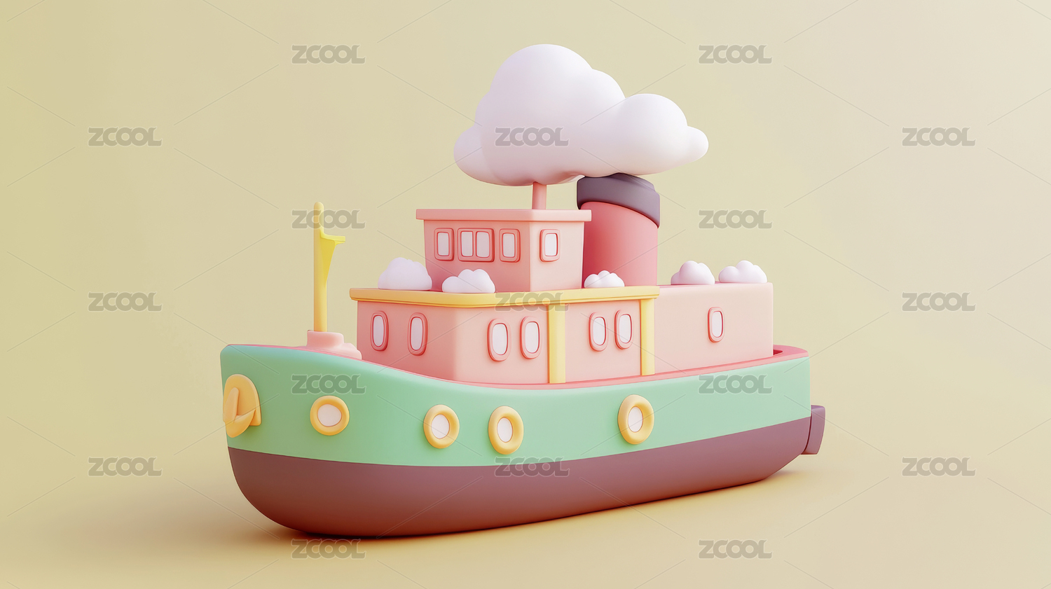 船舶,船体,创意,风格,海洋,航行,货船,卡通,可爱,蓝色