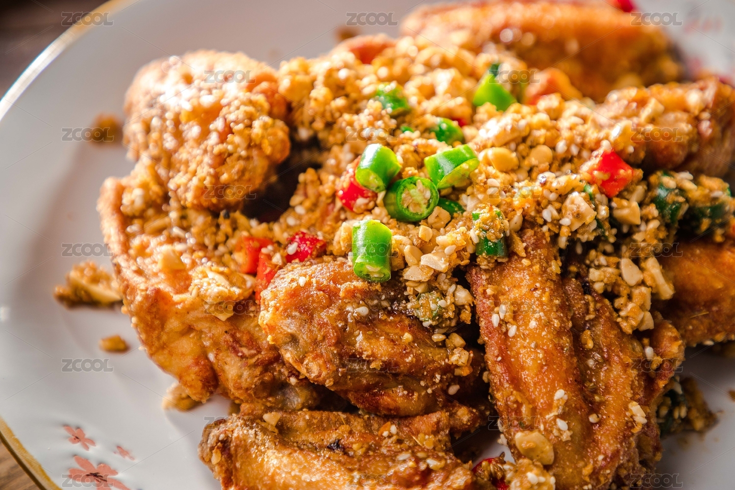 鸡,鸡肉作为食物,油炸,烹饪,鸡肉,肉,中餐,油炸鸡翅,满口香,芝麻