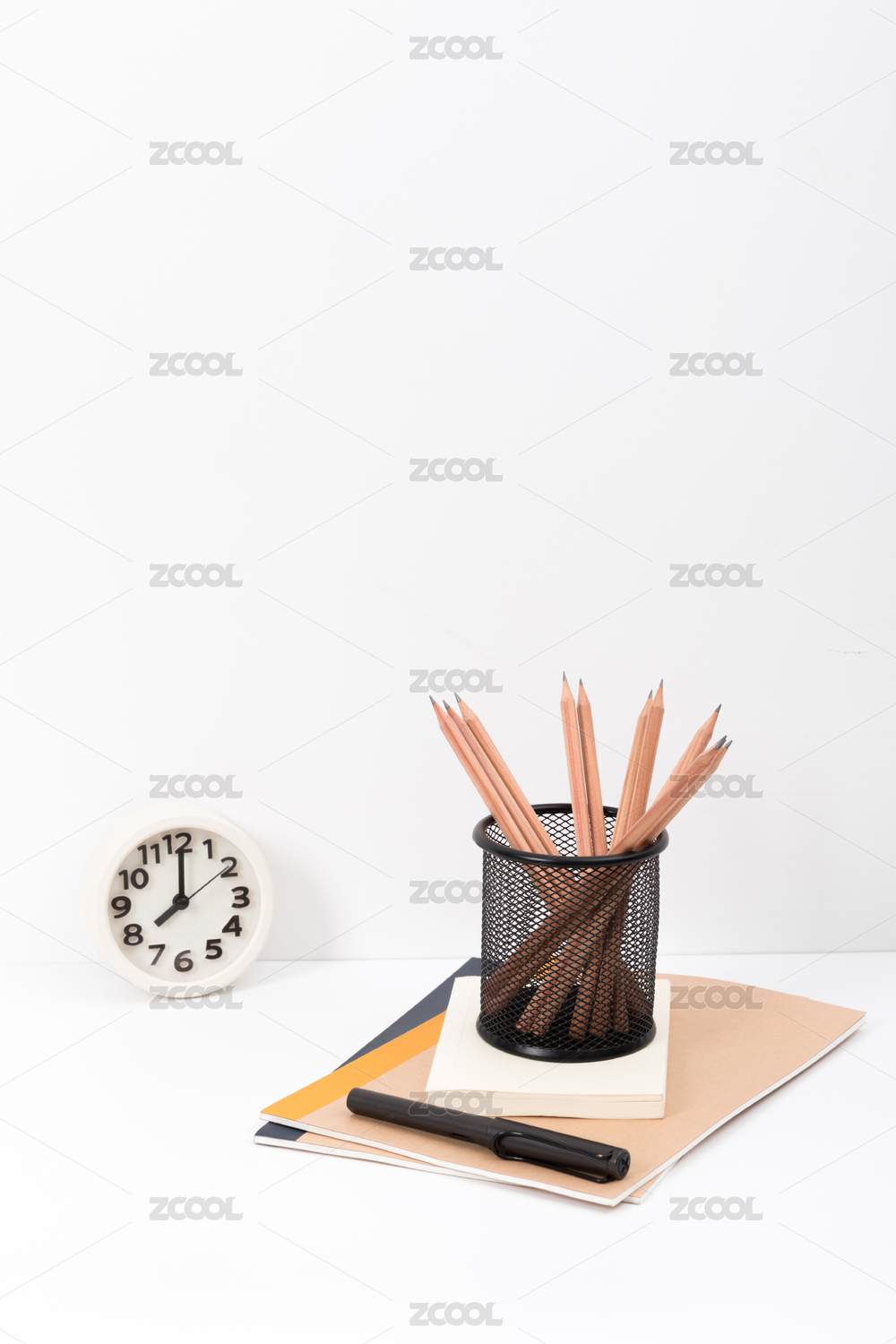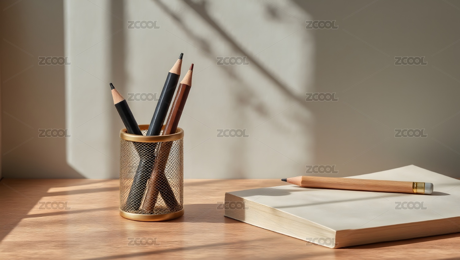 木头,笔筒,彩铅,画笔,本子,书本,书桌,桌面,文具,教育