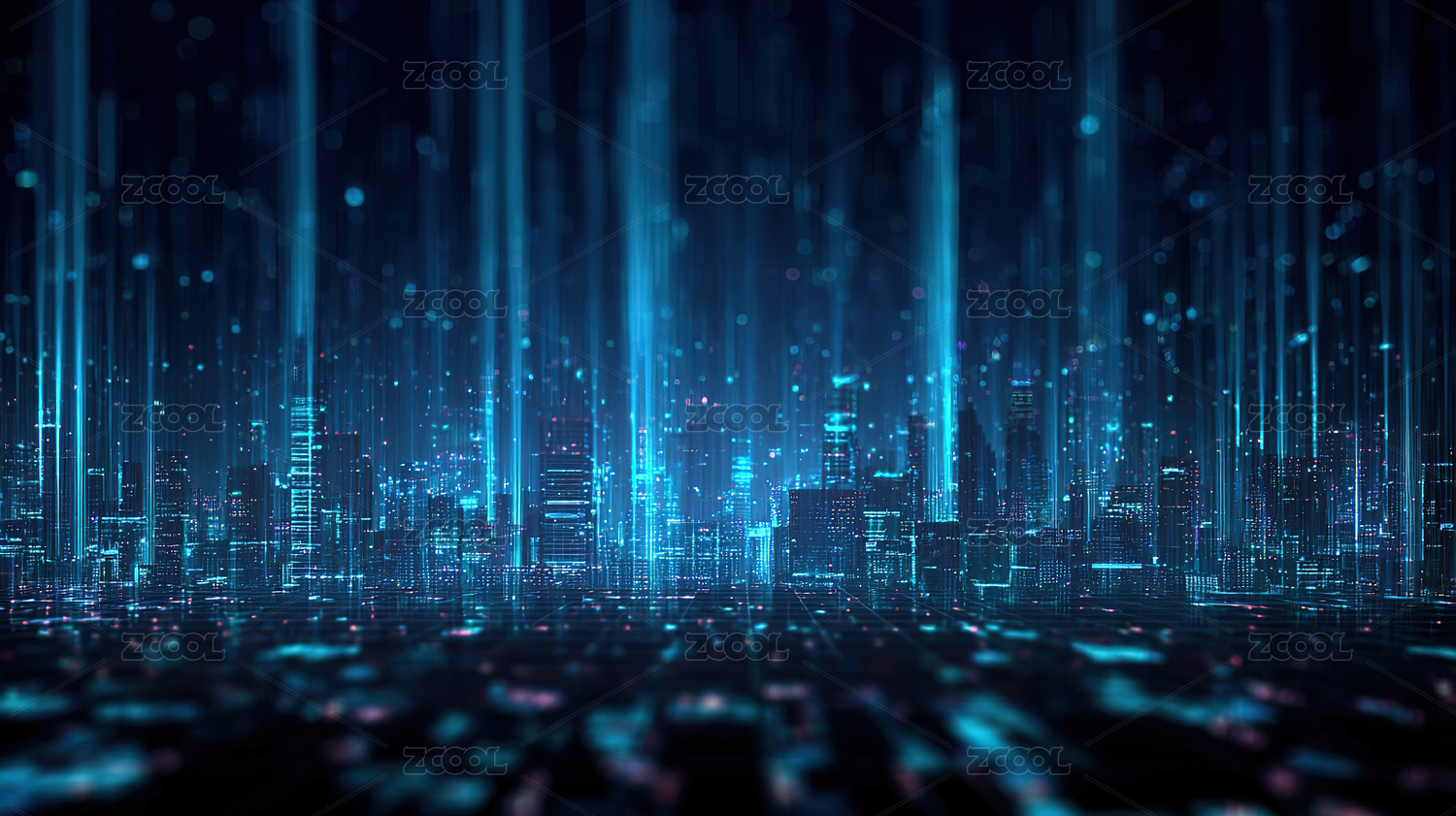 数字都市的蓝色夜幕
