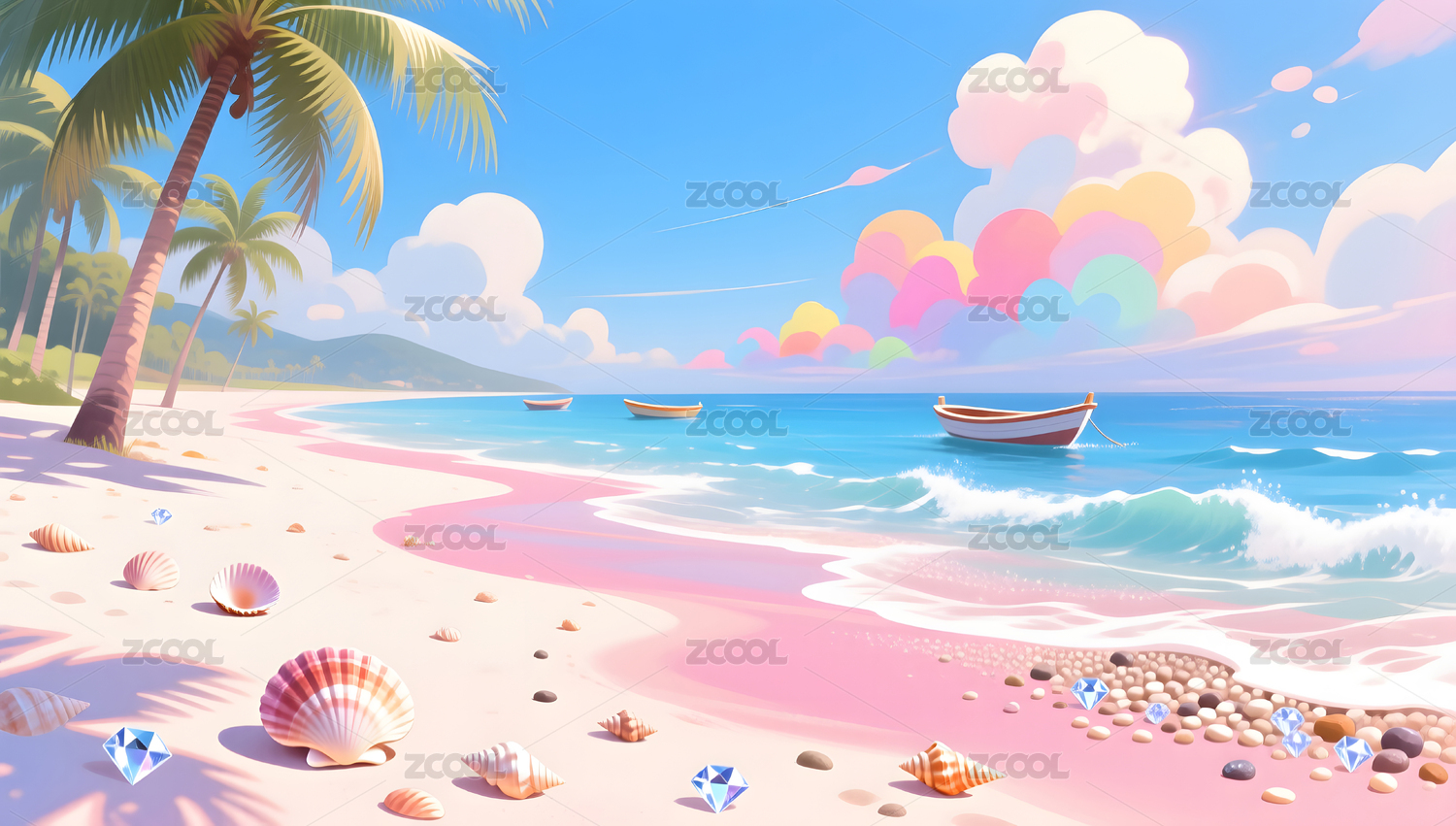 夏日清凉沙滩插画壁纸