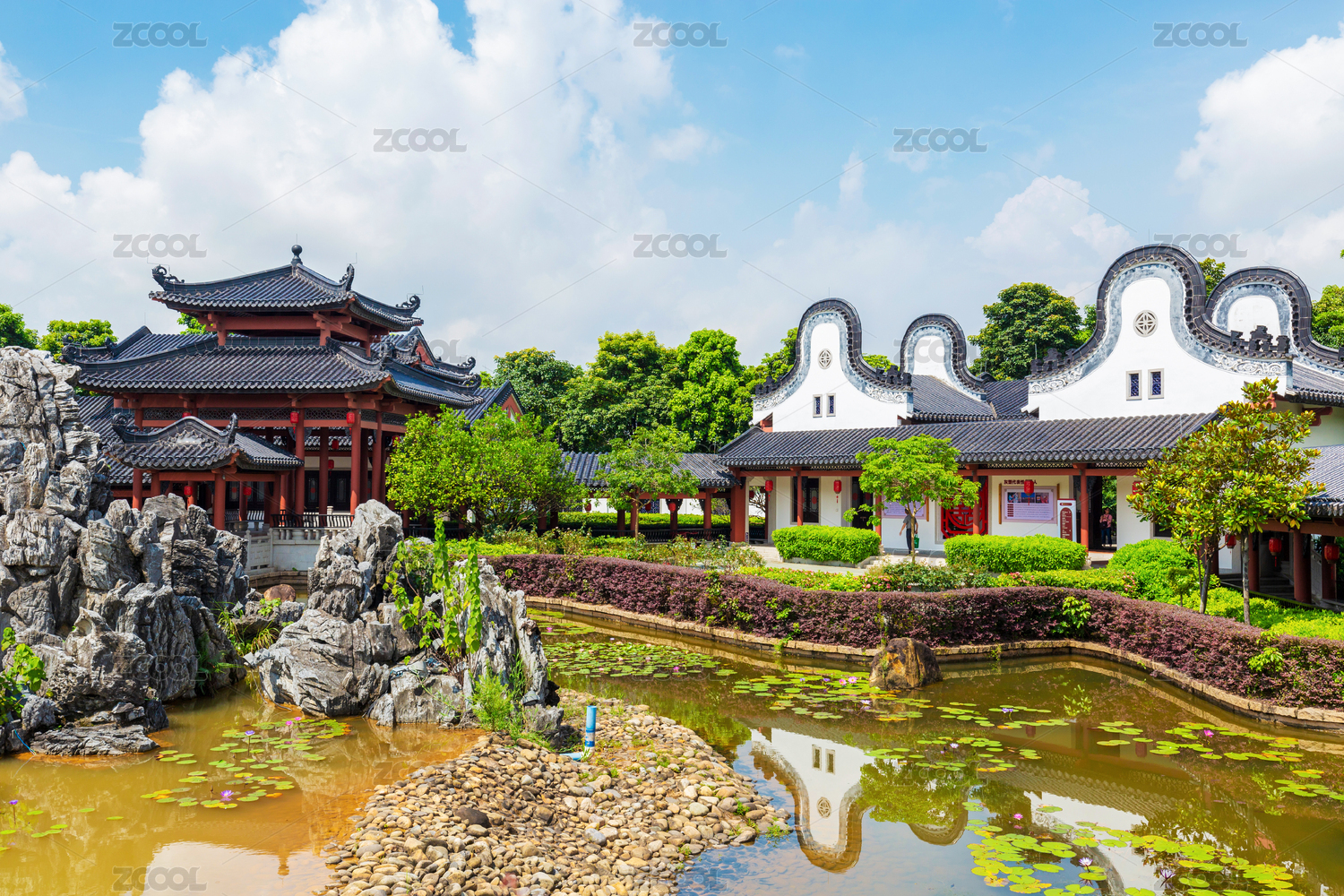 广州市花都湖国家湿地公园岭南园,月影通楼