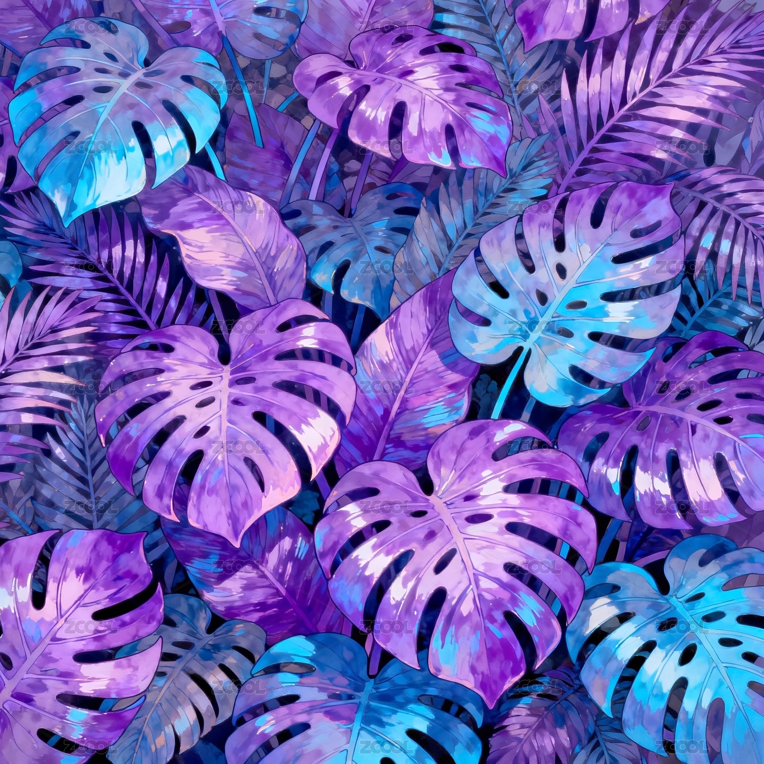 彩色龟背竹热带植物背景