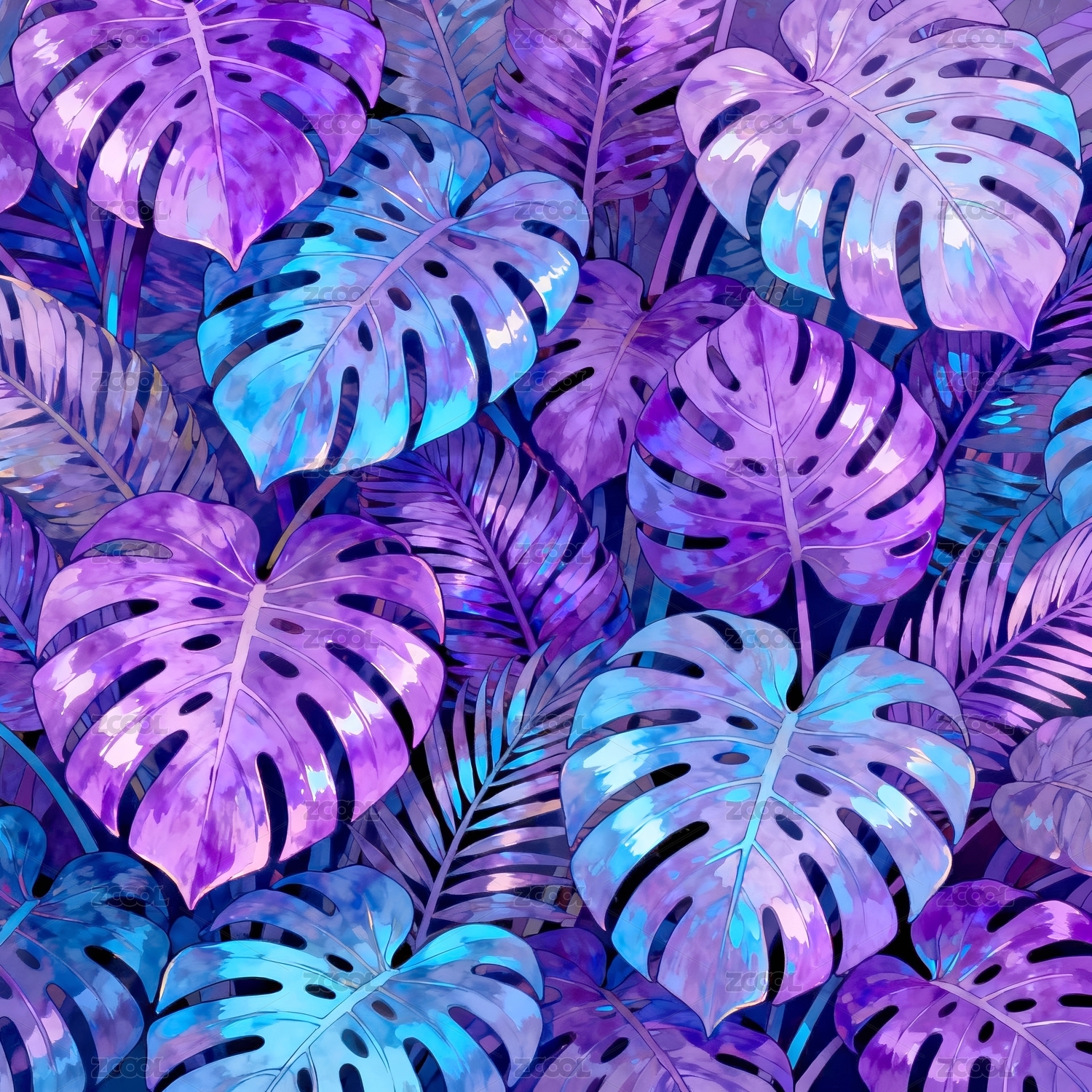 漂亮的3D全息风格热带叶子图片