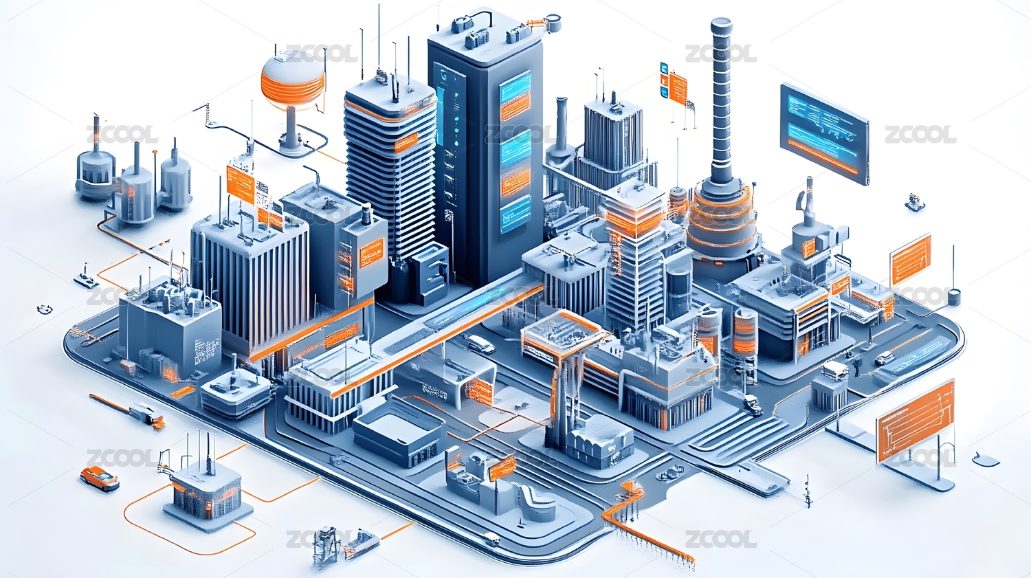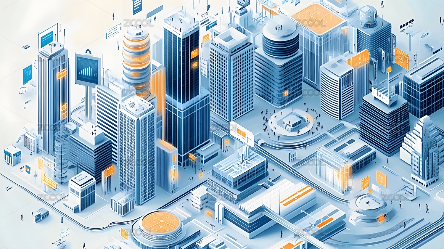 等距视图风格的未来智慧城市模型
