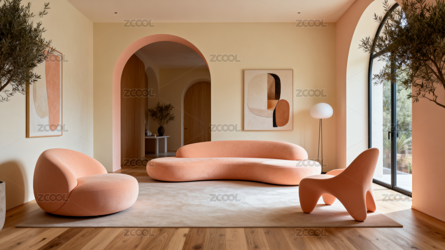 抽象, 现代, 极简, 空间, 创意, 圆形, 设计, 艺术, 客厅, 沙发