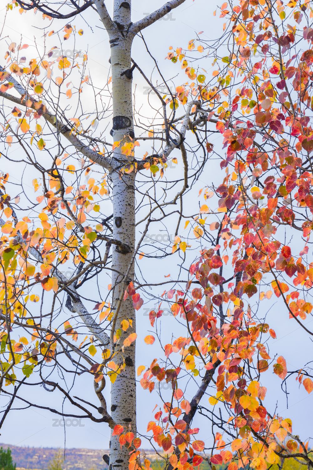 中国大兴安岭秋风吹动杨树彩色的叶子