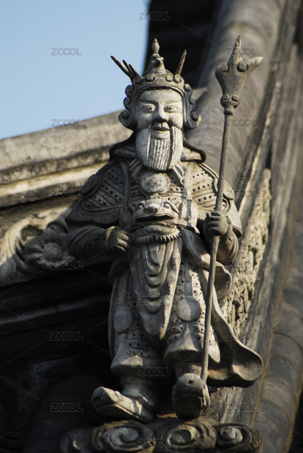 成都,大慈寺,山门,屋脊,脊饰,正脊,装饰,天王,人物,吞兽