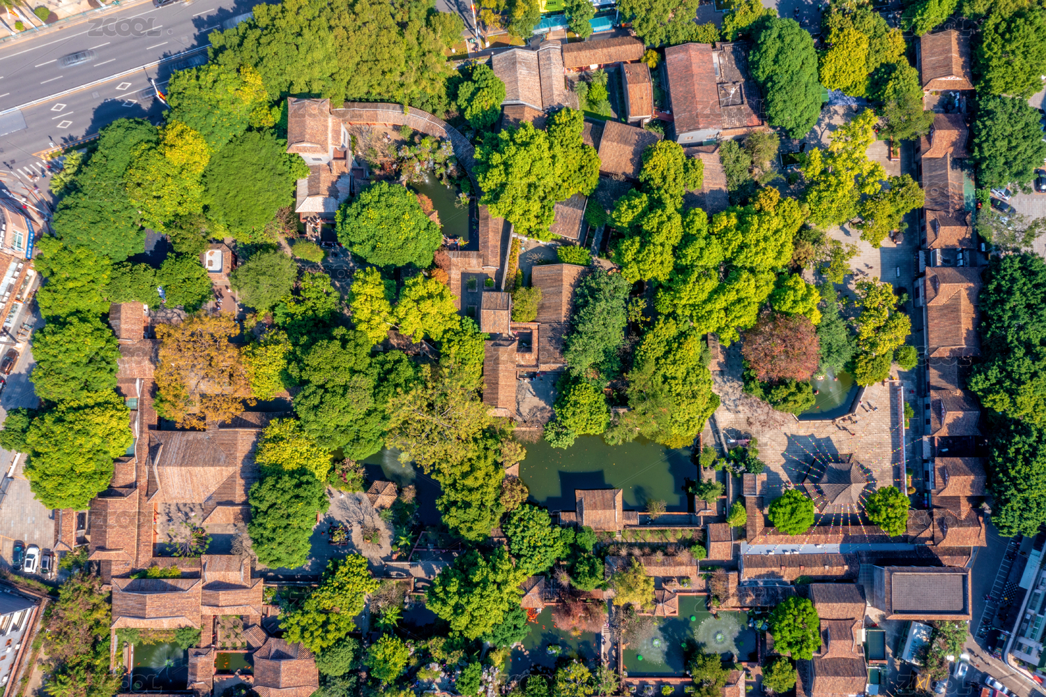 苏州同里古镇风景航拍,旅游景区退思园,江