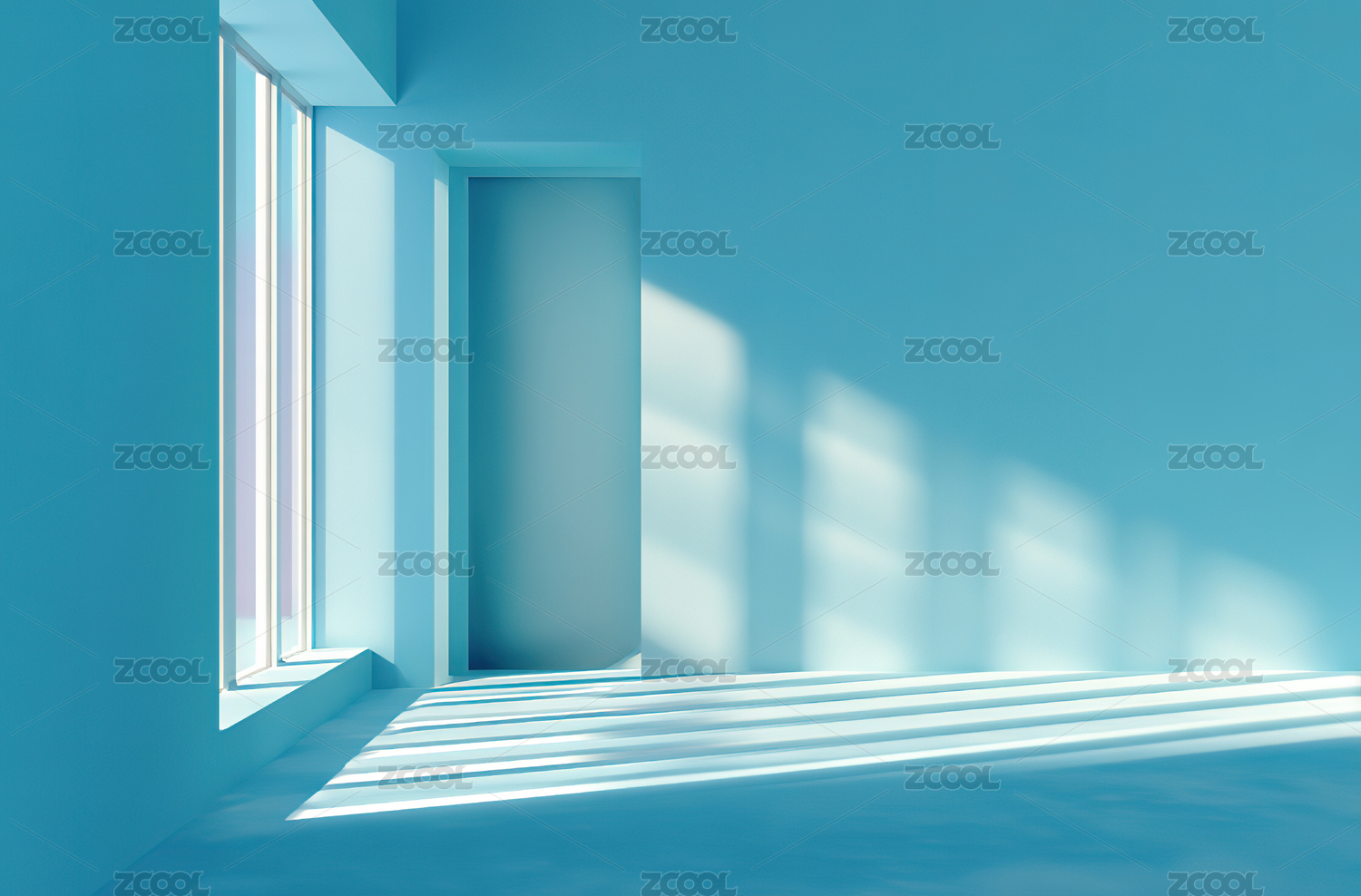 蓝色房间中的门洞与光影