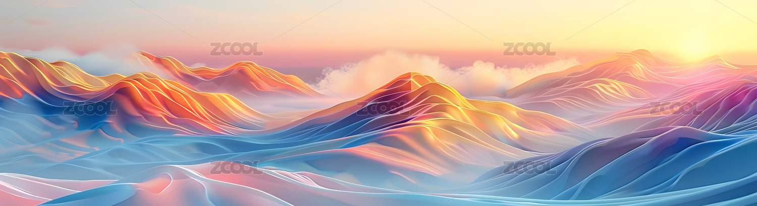 3D渲染山丘山脉高山大山山峰数字艺术插画