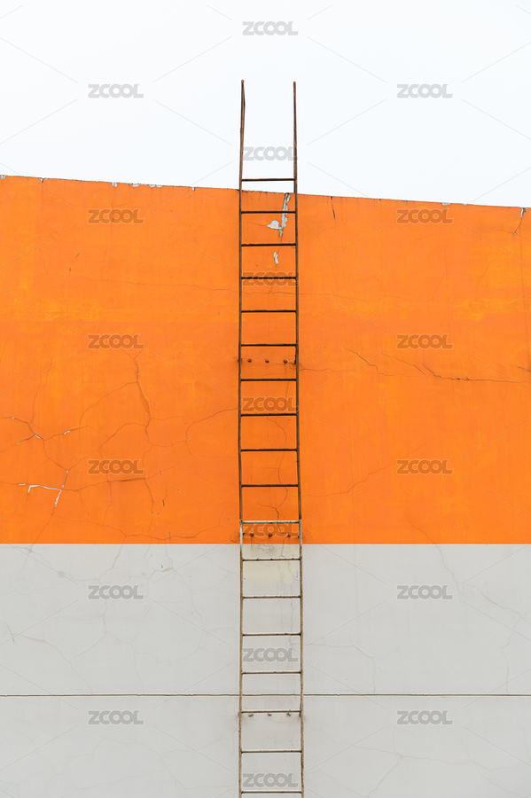 橙色墙边的白色梯子