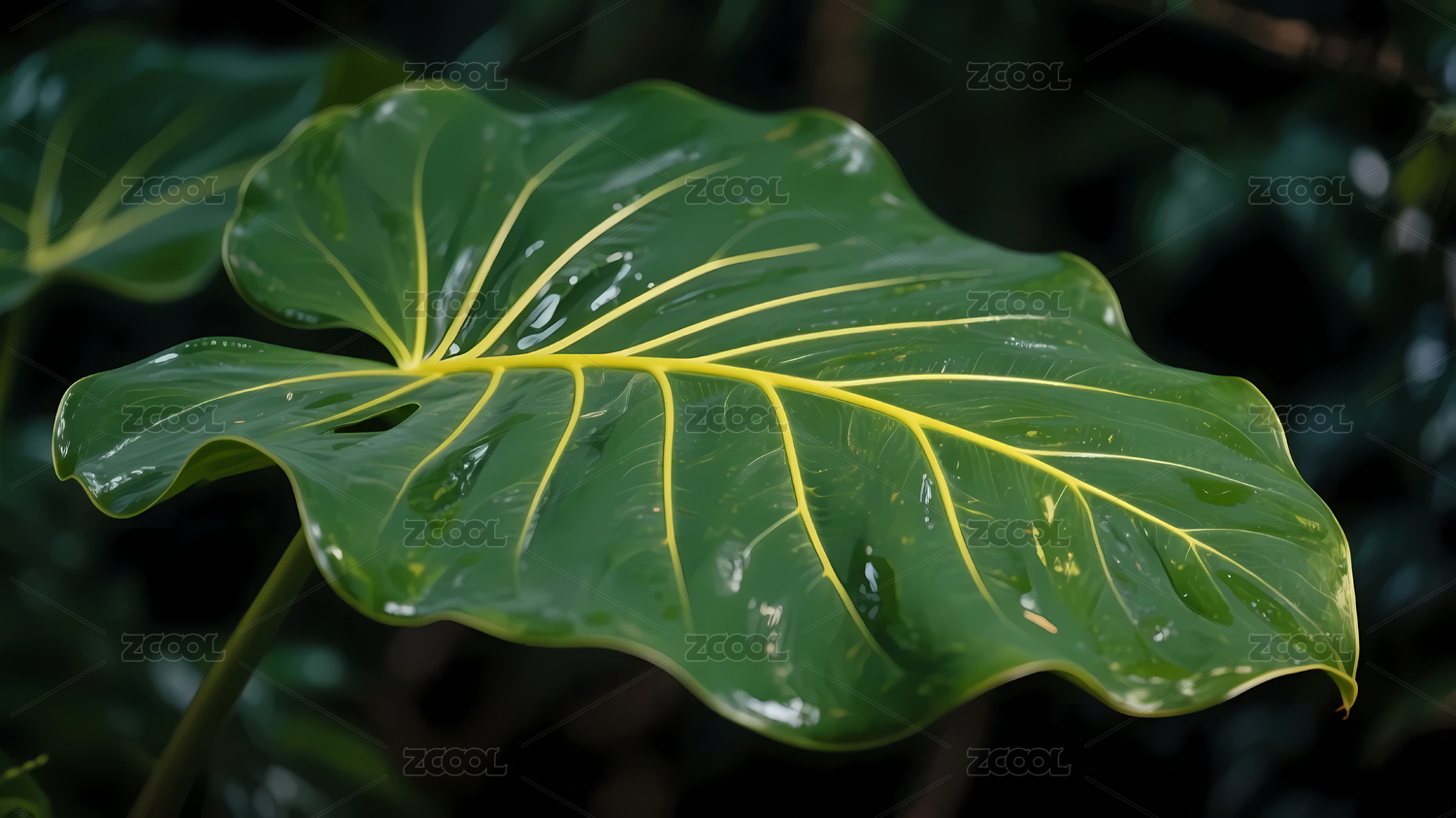 大自然户外植物海芋绿叶叶子露珠露水素材