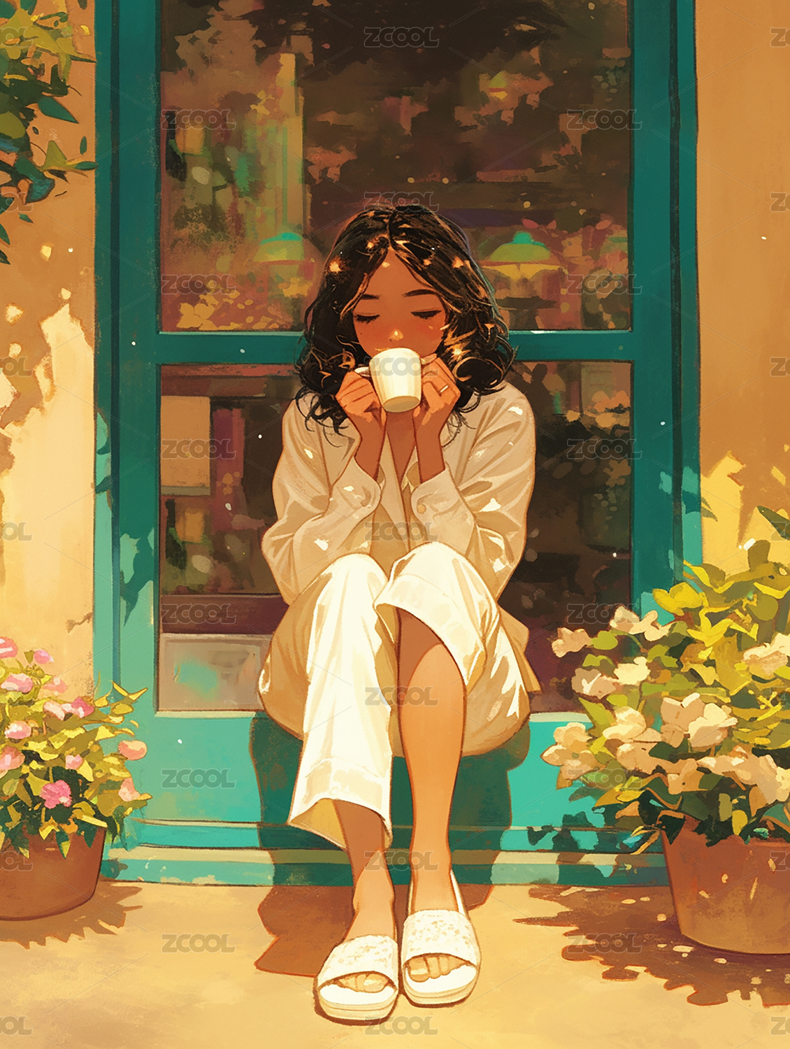 咖啡店,女生,二次元,唯美素材,商业包装,商务,人物,电商海报,平面模板,商业模板