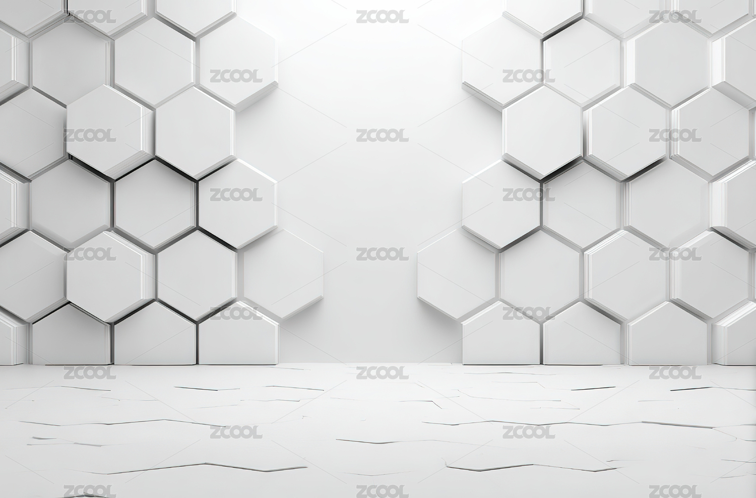 白色六边形墙与地面的现代简约空间