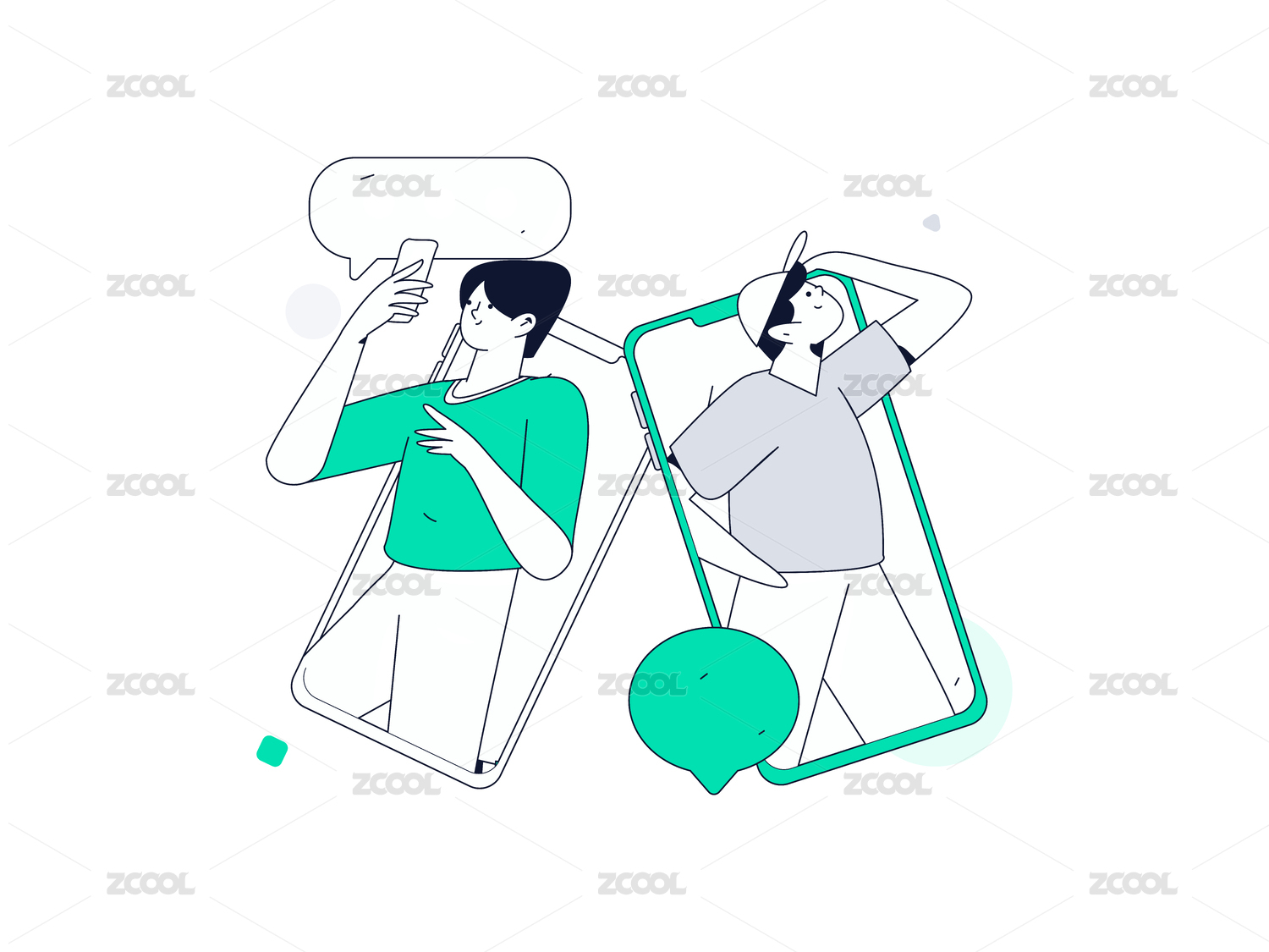虚拟的人物社交沟通概念商业扁平矢量手绘插
