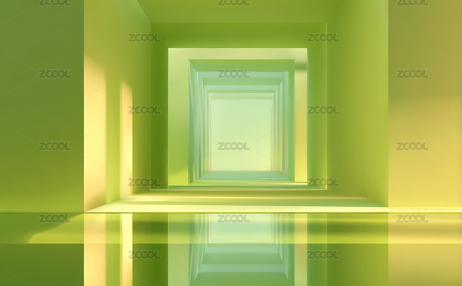 绿色方形隧道透视效果