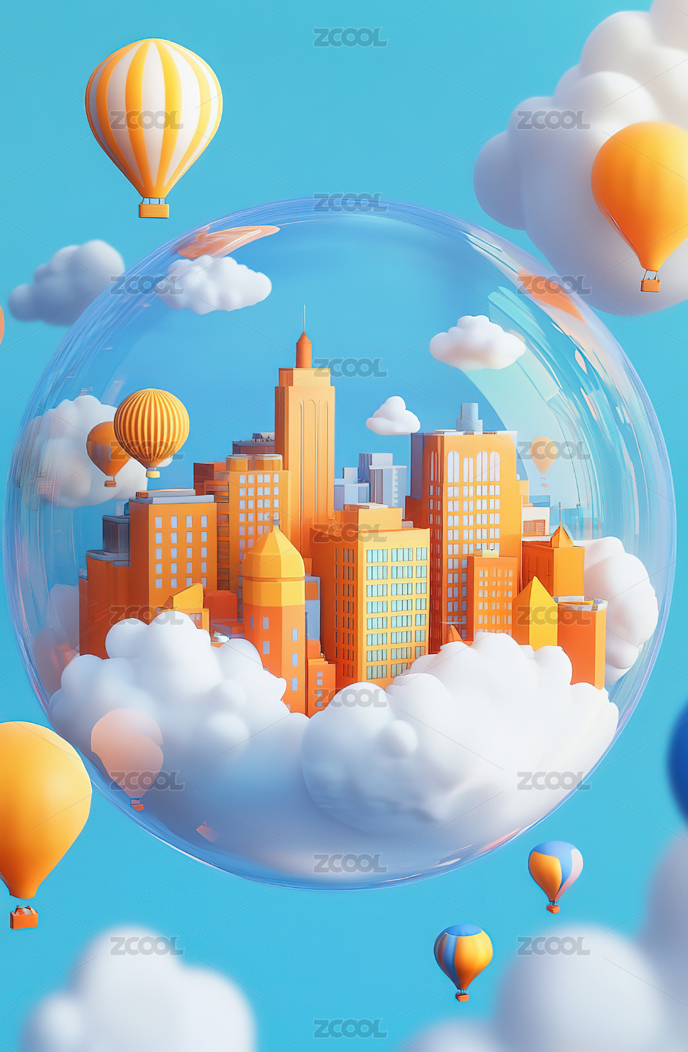 无人,户外,热气球,云,热,插画,庆祝,节日,飞艇,天空