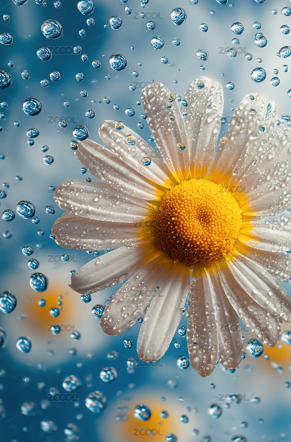 AIGC202402,鲜花,花朵,花,白色,雏菊,特写,水滴,水珠