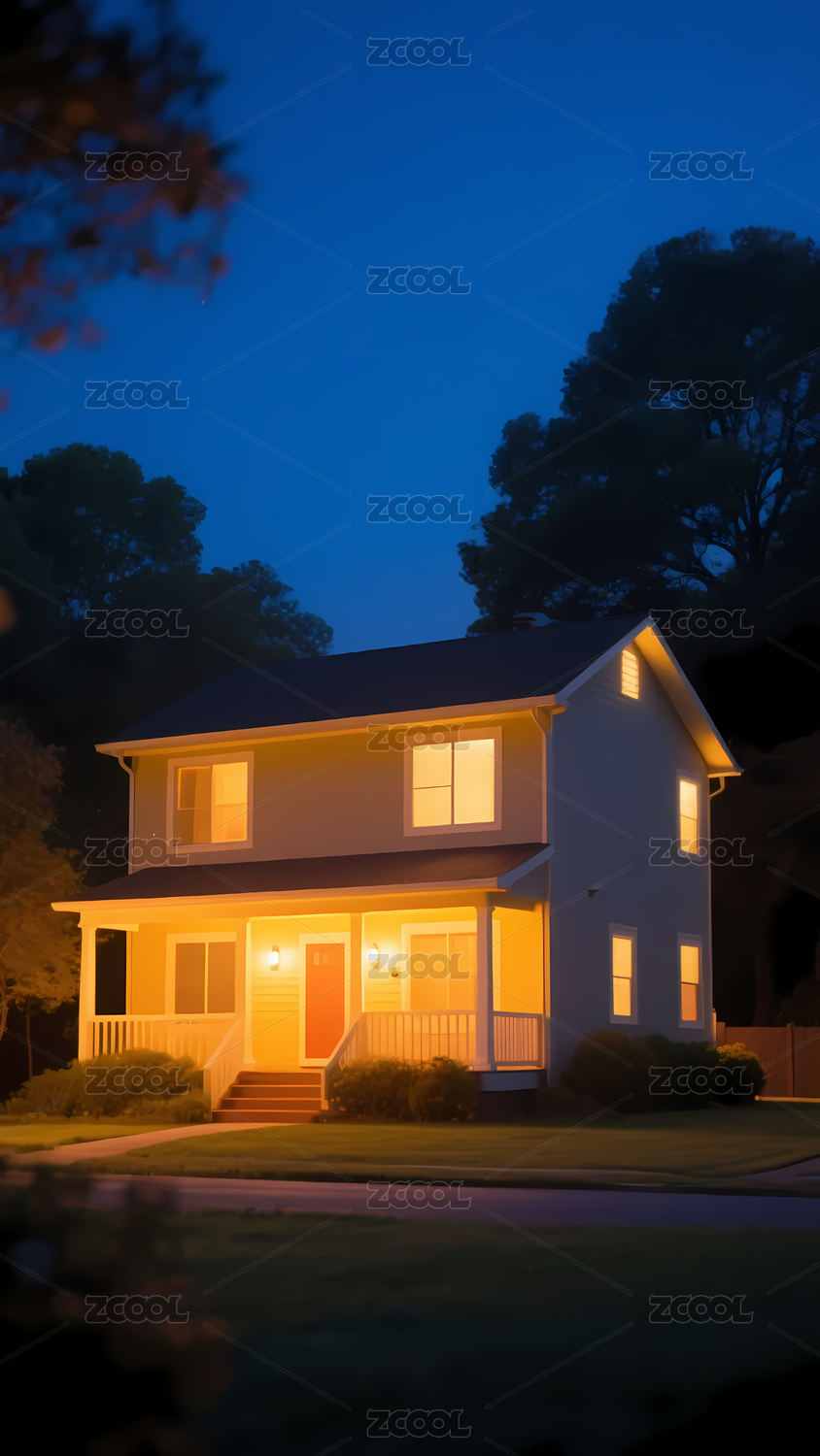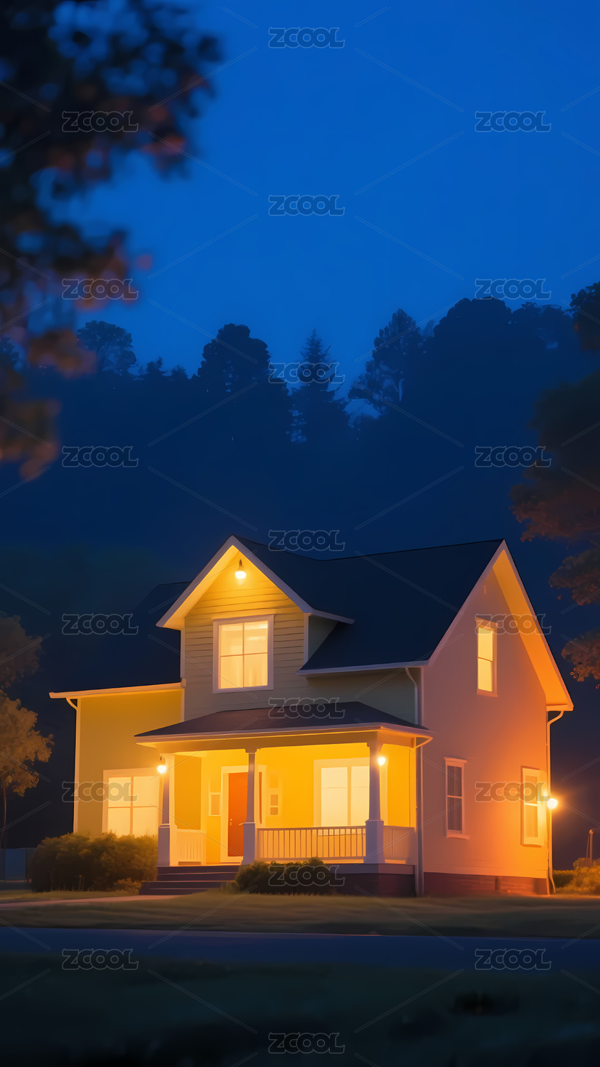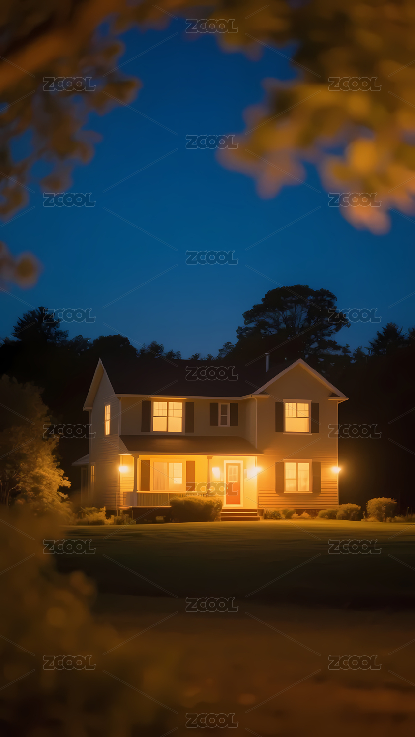 夜幕下的温馨房屋